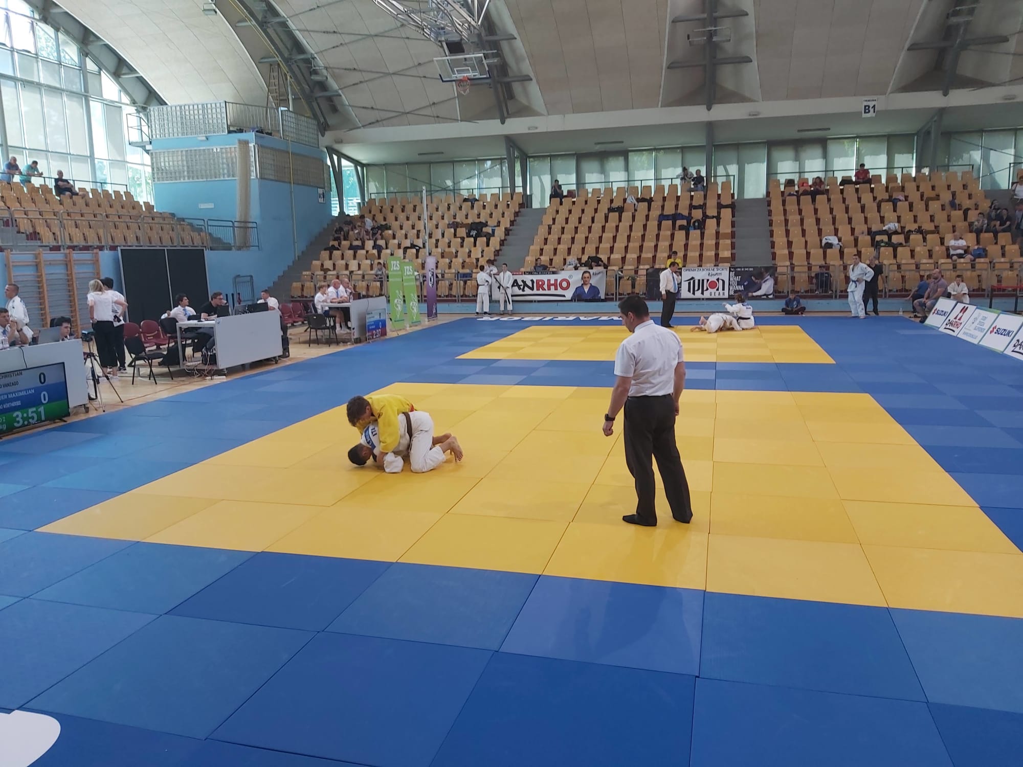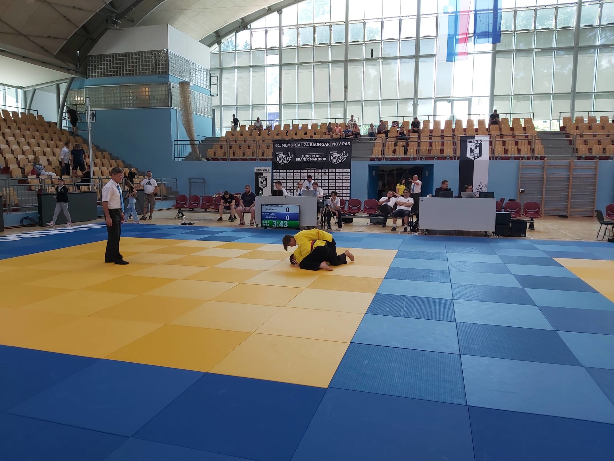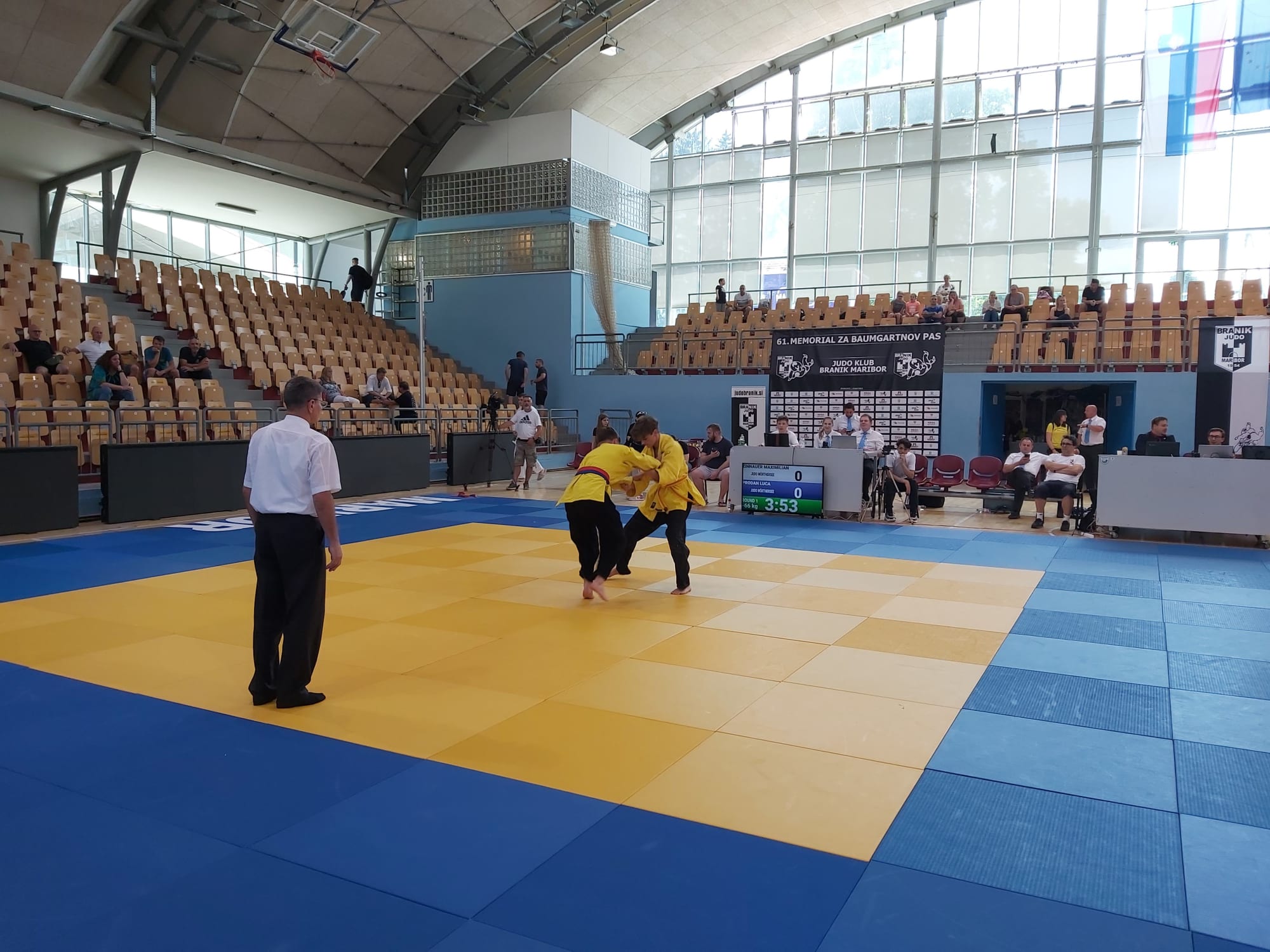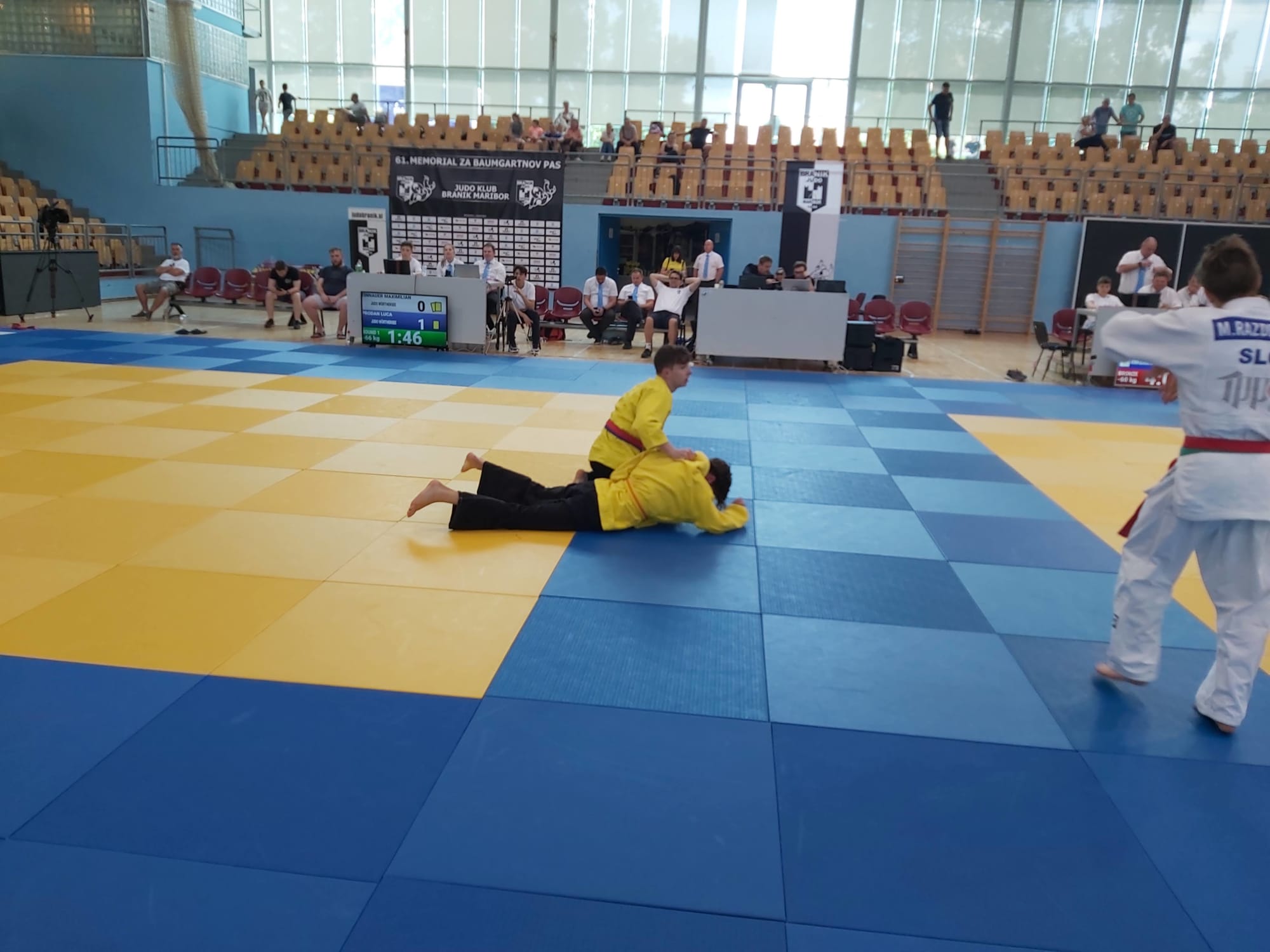 Ebenfalls in einer Gewichtsklasse starteten Luca Prodan und Maximilian Zinnauer. Auch sie begegneten sich gleich bei ihrer ersten Begegnung. Ihr Kampf war lange ausgeglichen, bis Luca am Ende 2 Wazari Wertungen erzielen konnte und damit das Geschehen vor dem Ablauf der regulären Zeit beenden konnte. Nach weiteren intensiven Kämpfen schaffte Luca es sich mit dem 3. Platz eine Bronzemedaille zu verdienen. Maxi schrammte mit dem 4. Platz knapp am Stockerl vorbei.
