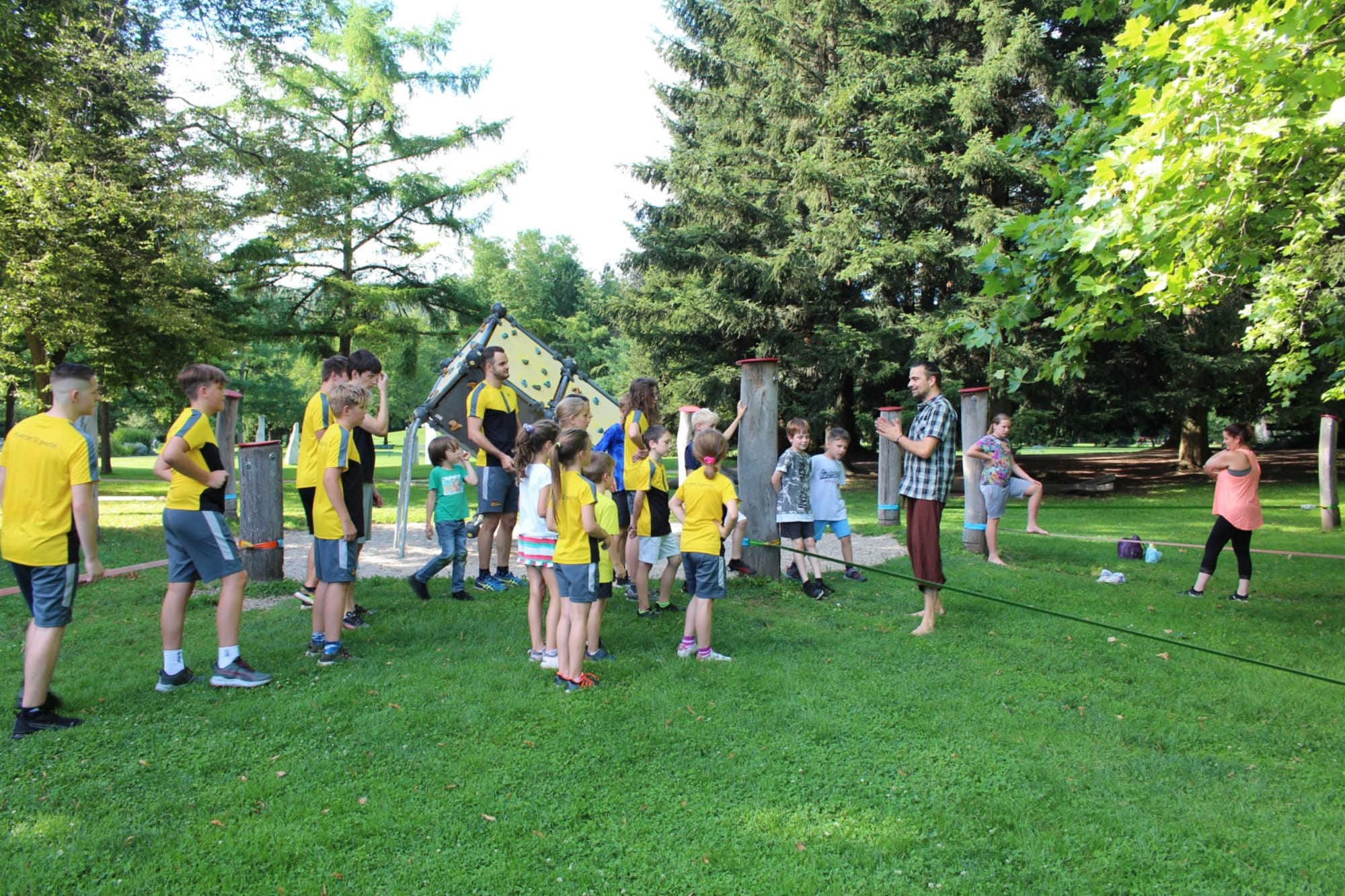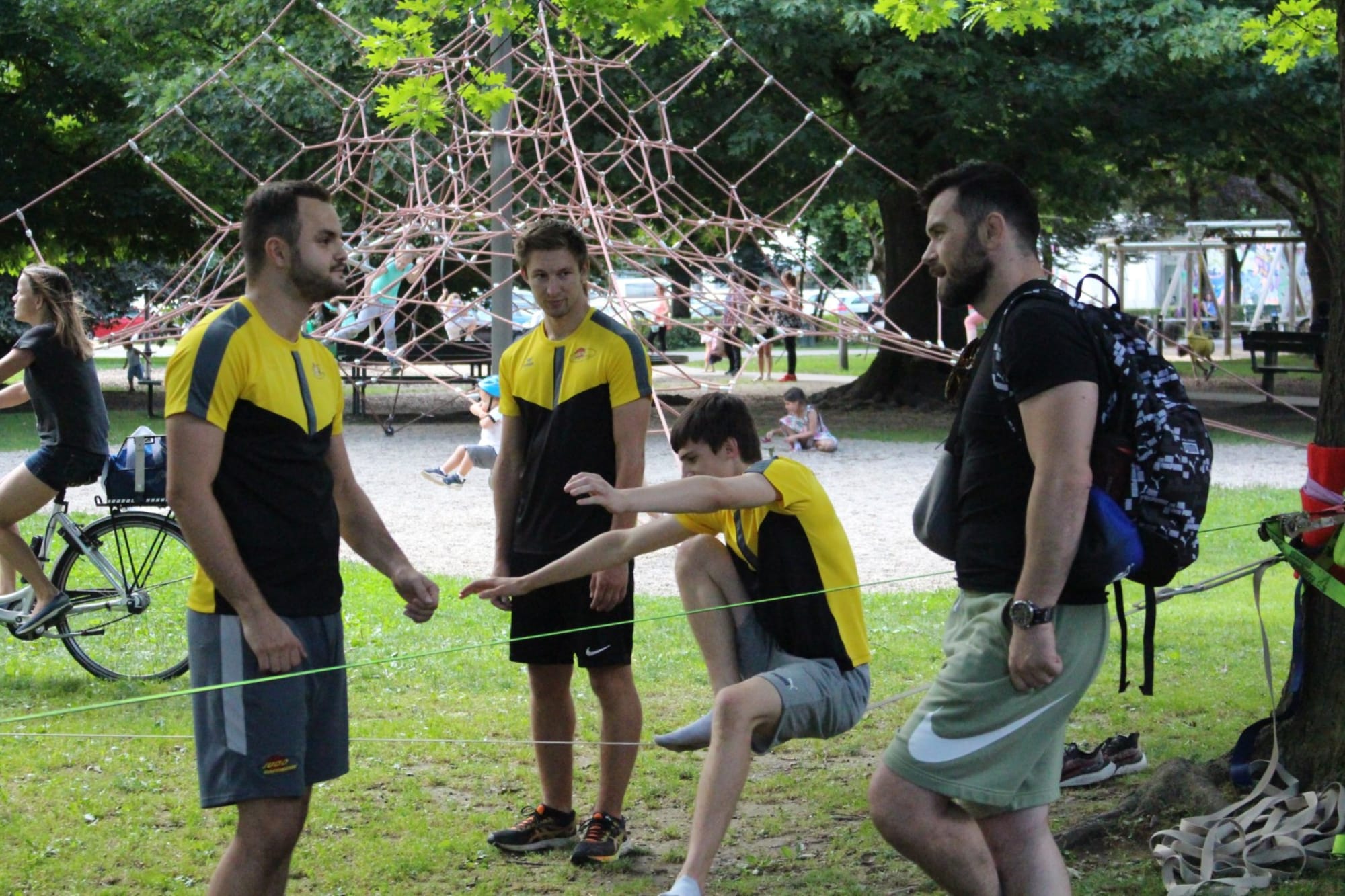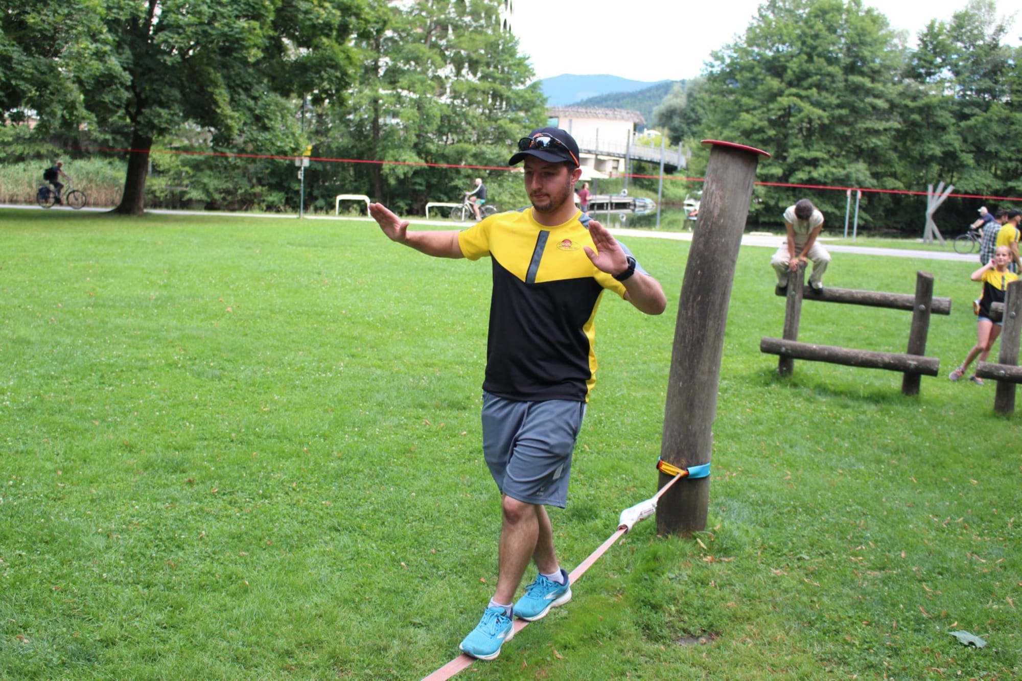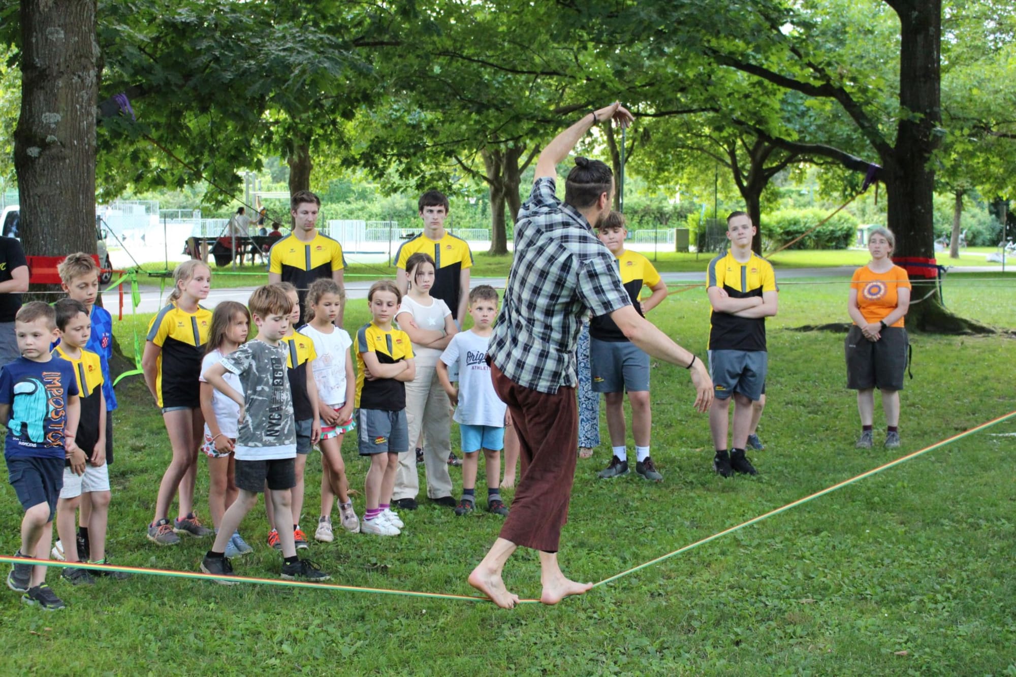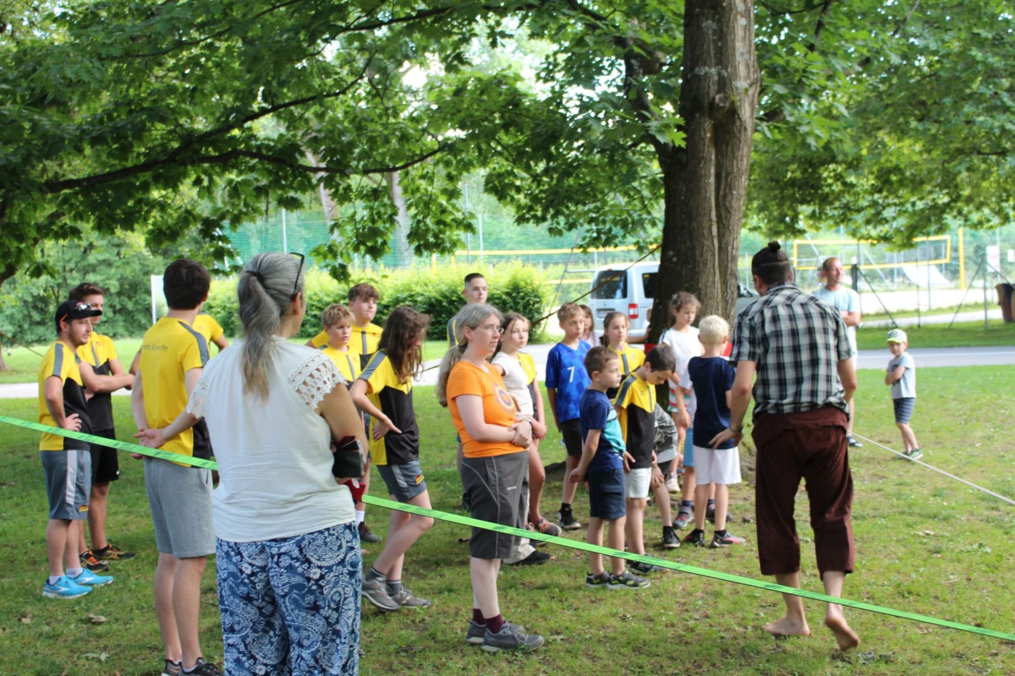 Unter den super Anleitungen von Andreas Erschen und Florian Zschätzsch wurden wir in die Kunst des Slacklinens eingeführt. Dies gilt als Trendsportart, bei der man auf einem Gurtband balanciert, das zwischen zwei Befestigungspunkten gespannt ist. Mit viel Elan und Mut wurden sämtliche Lines mit mehr oder weniger Erfolg getestet. Seht euch einfach die Bilder dazu an.