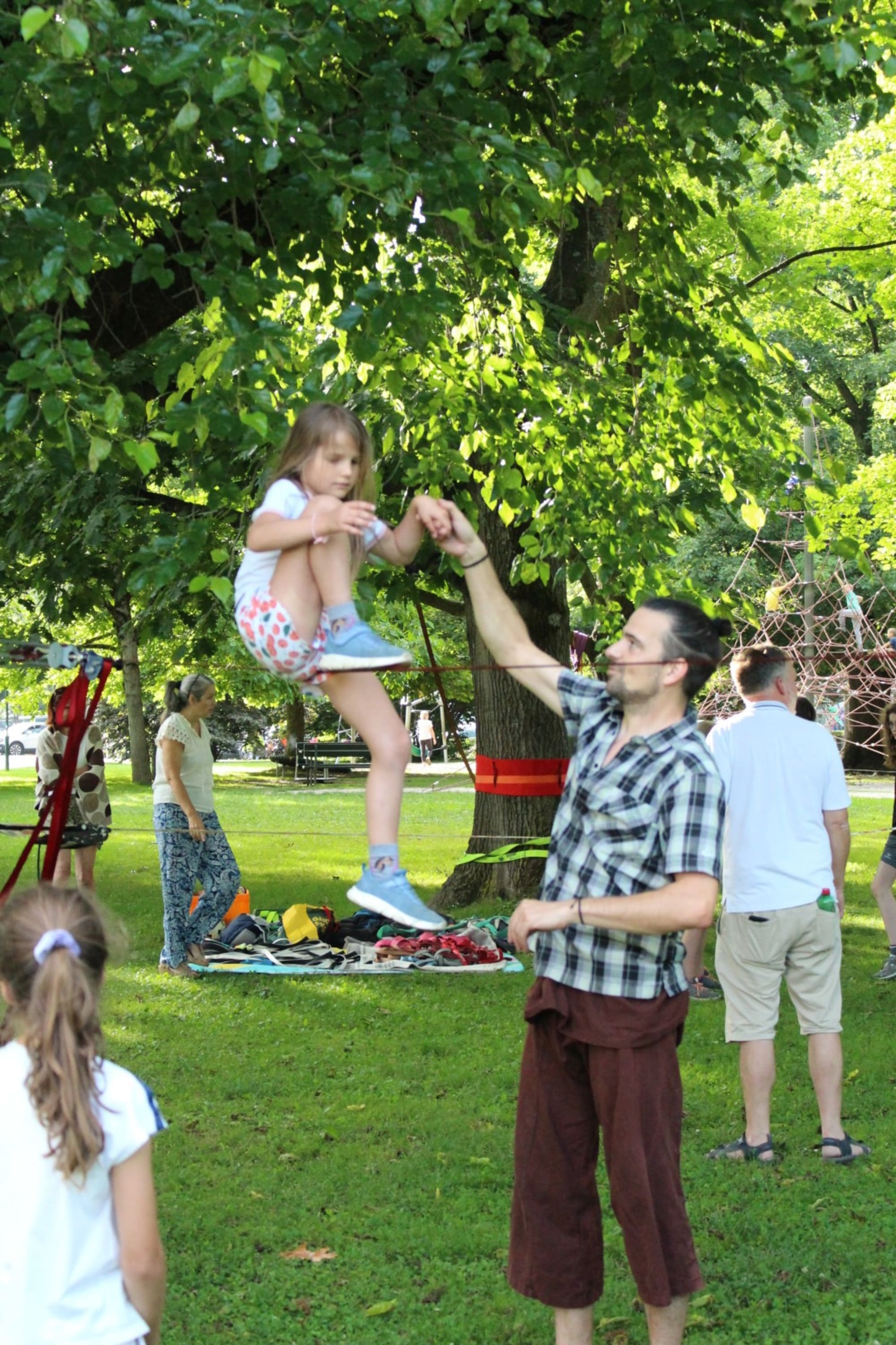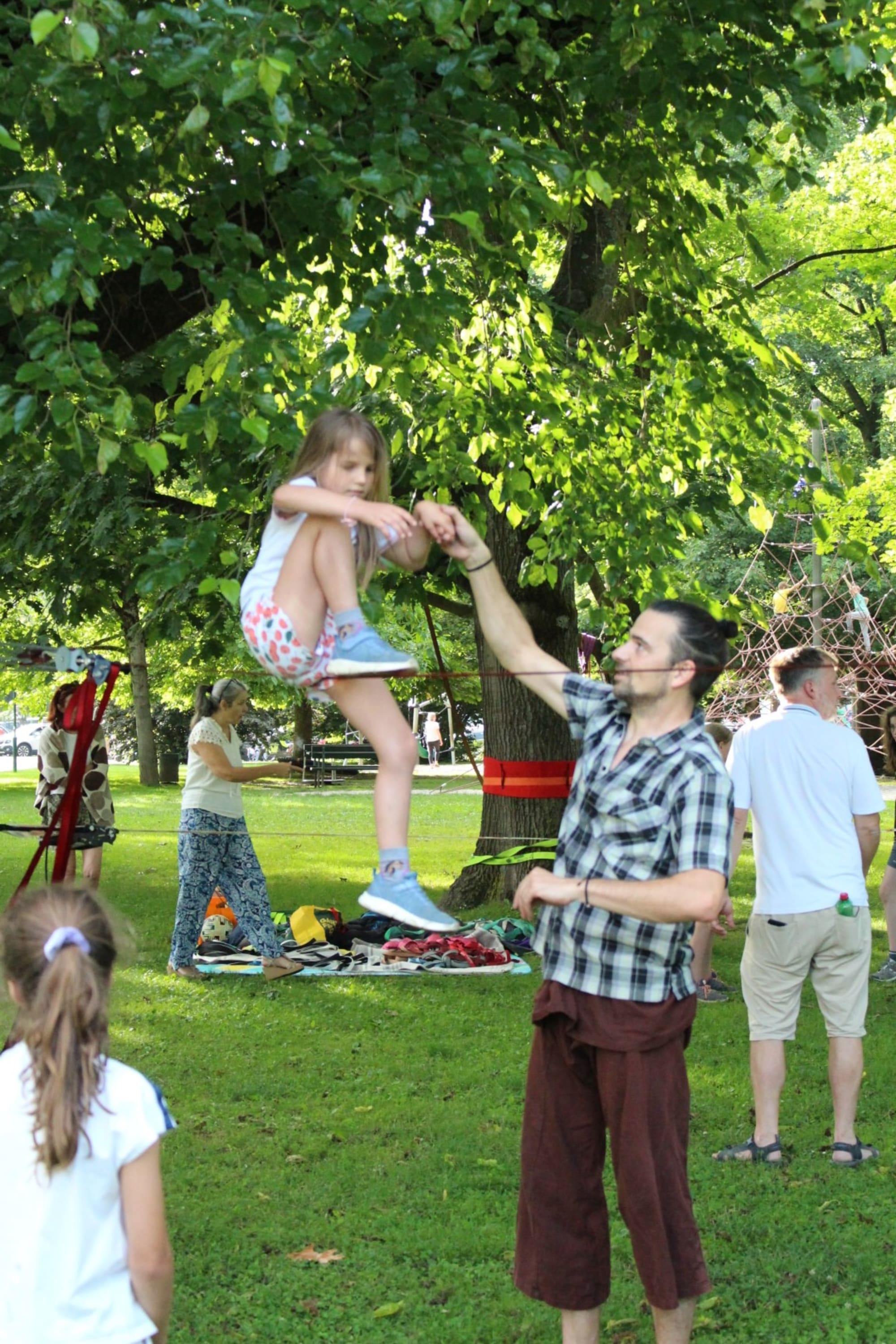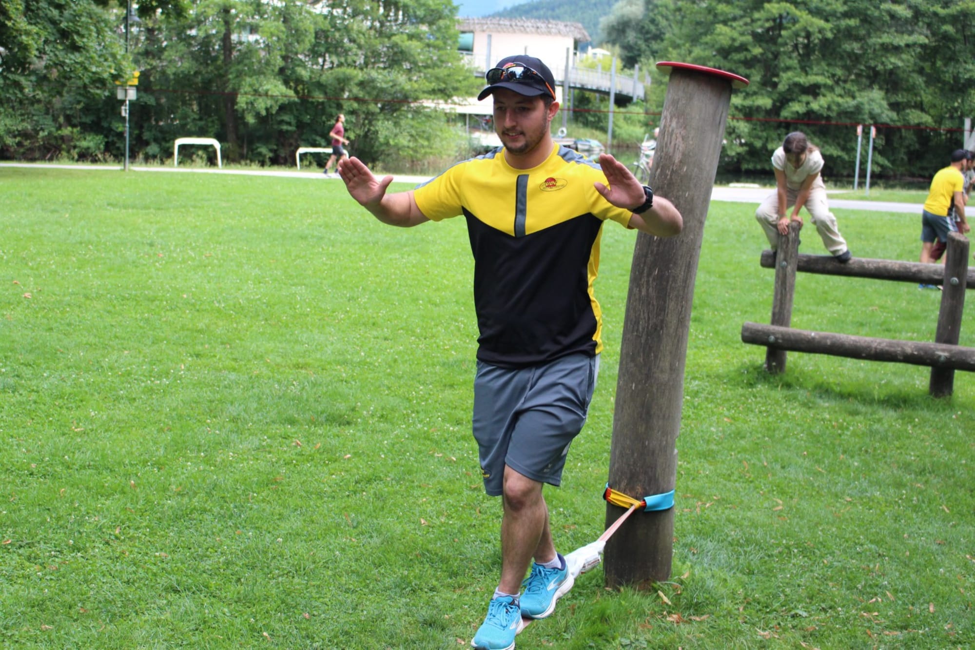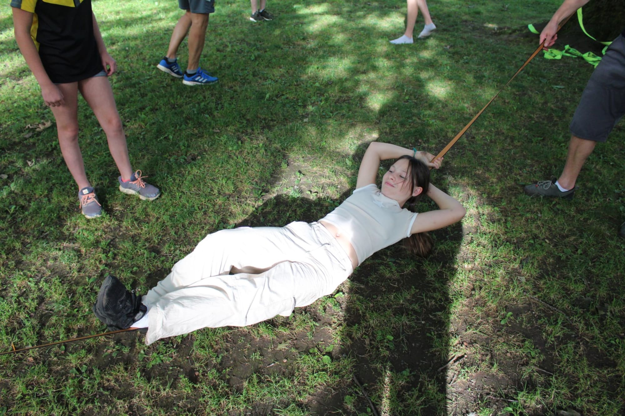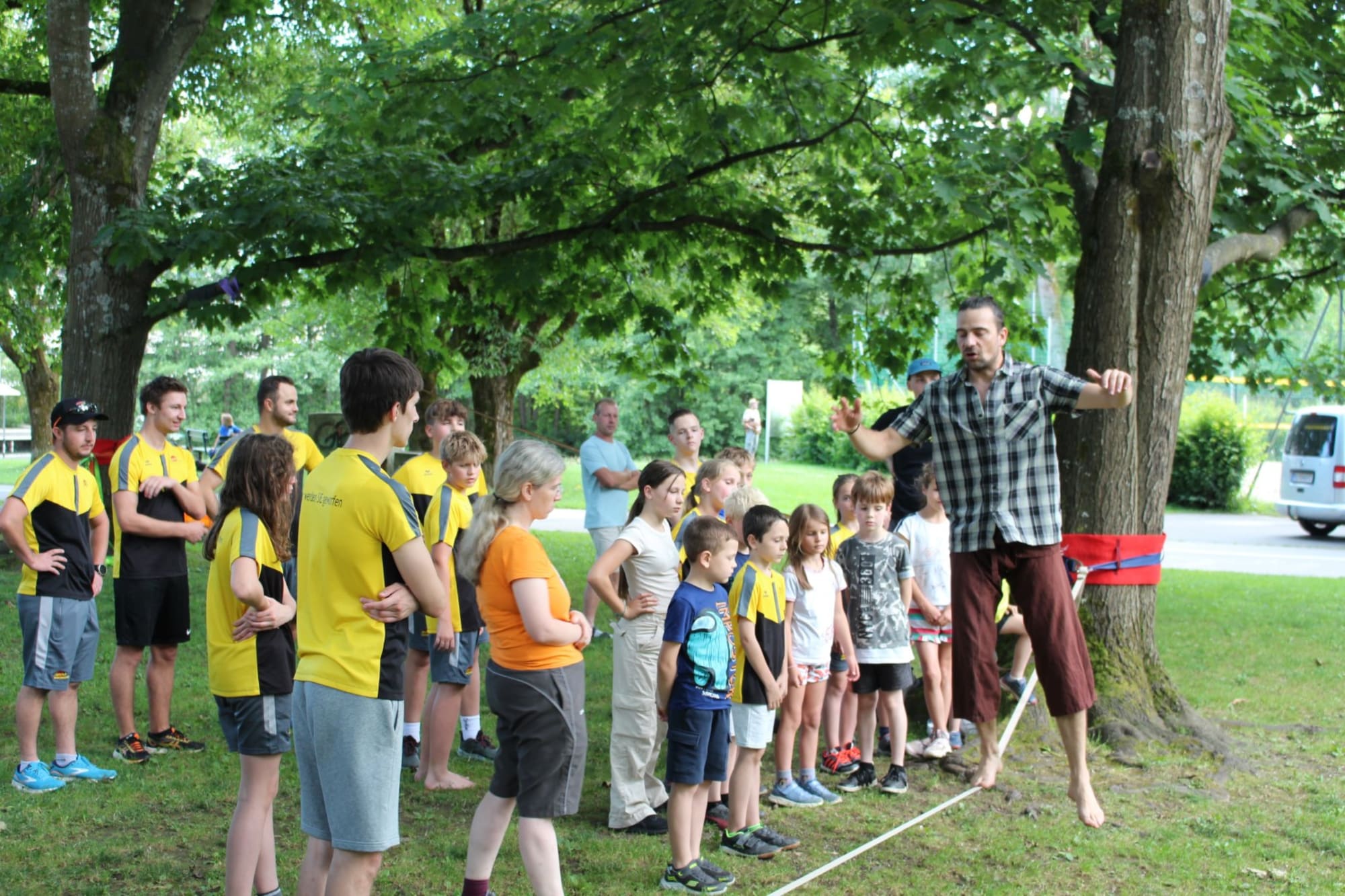 Unter den super Anleitungen von Andreas Erschen und Florian Zschätzsch wurden wir in die Kunst des Slacklinens eingeführt. Dies gilt als Trendsportart, bei der man auf einem Gurtband balanciert, das zwischen zwei Befestigungspunkten gespannt ist. Mit viel Elan und Mut wurden sämtliche Lines mit mehr oder weniger Erfolg getestet. Seht euch einfach die Bilder dazu an.