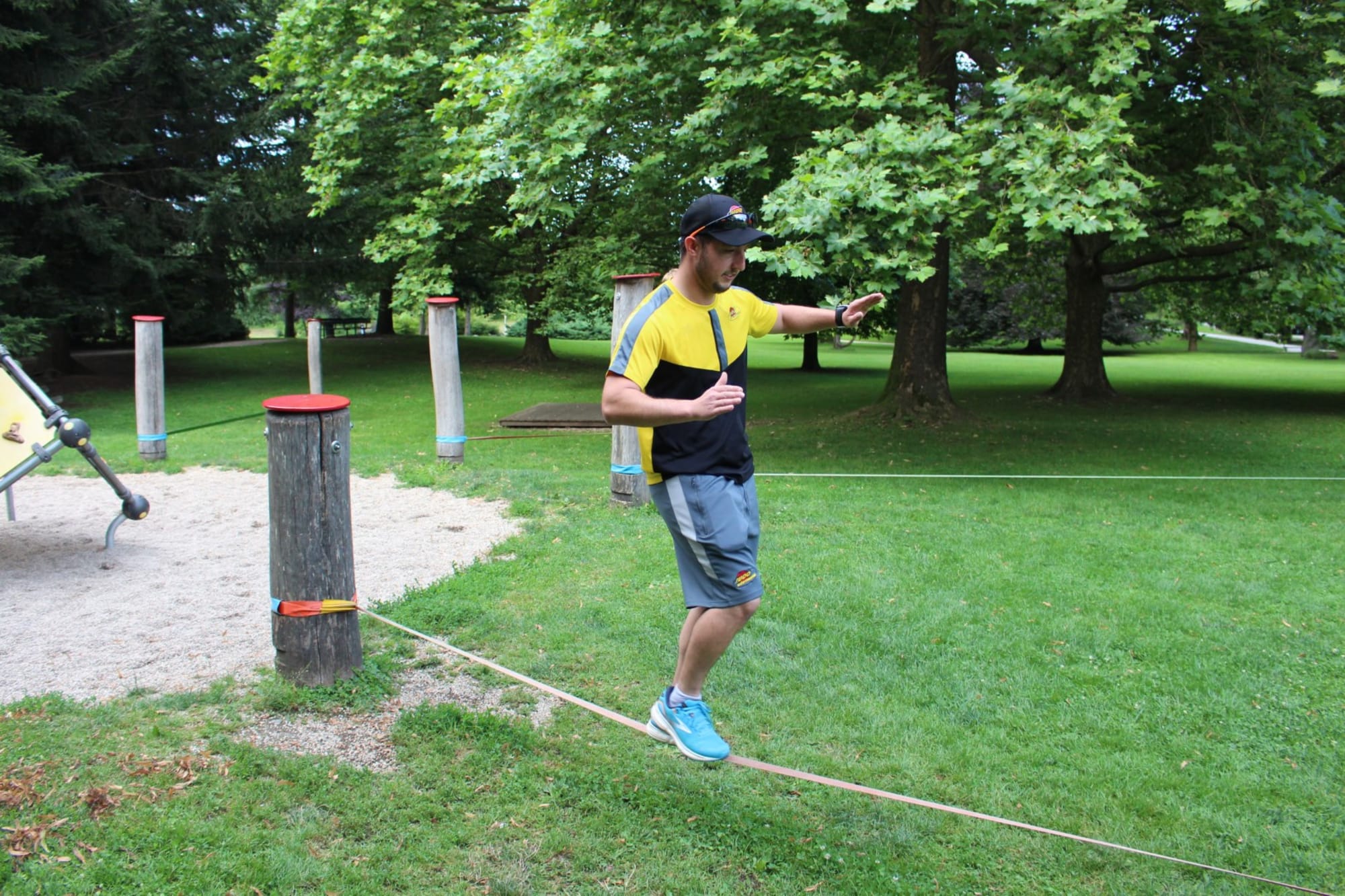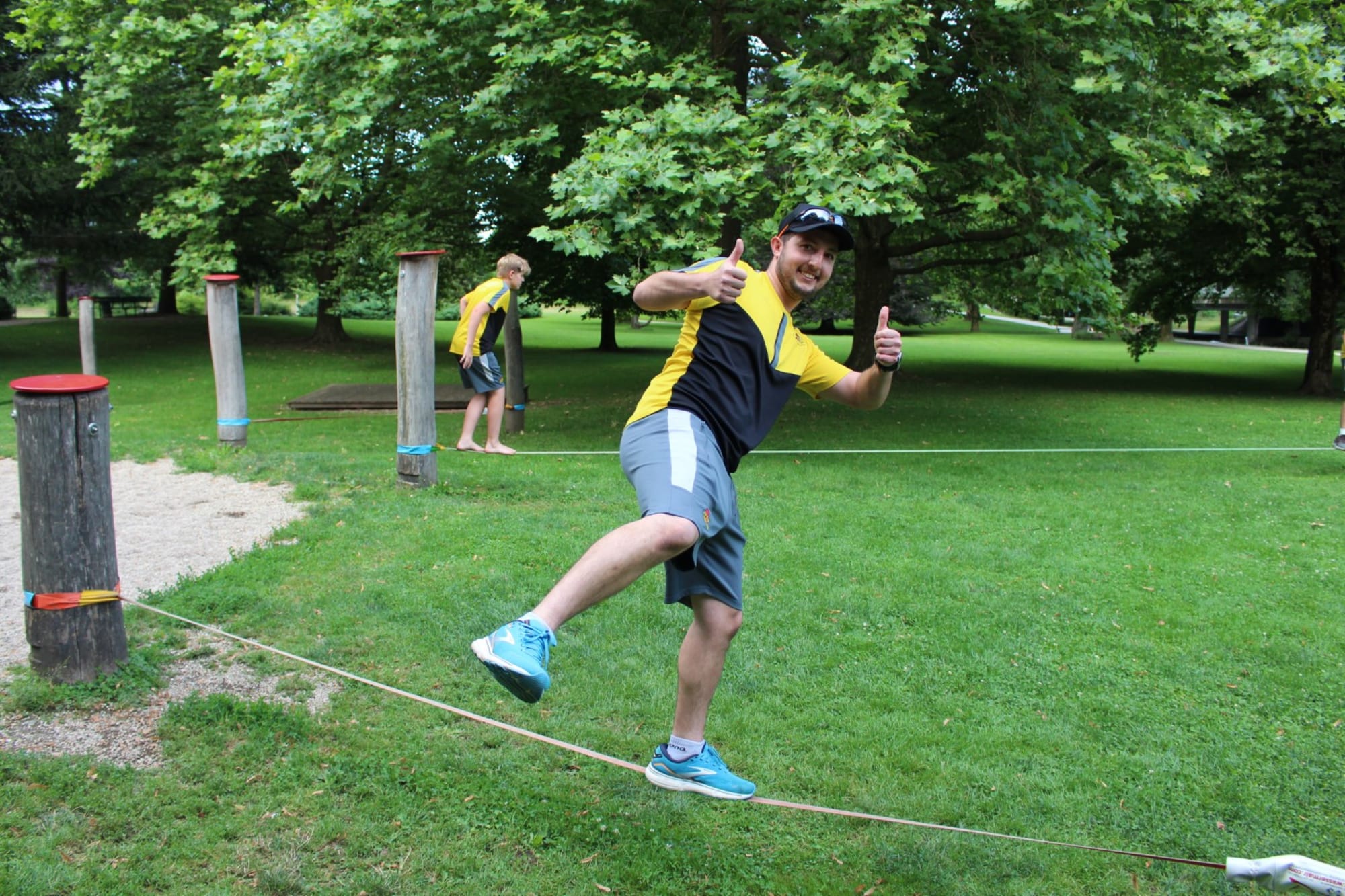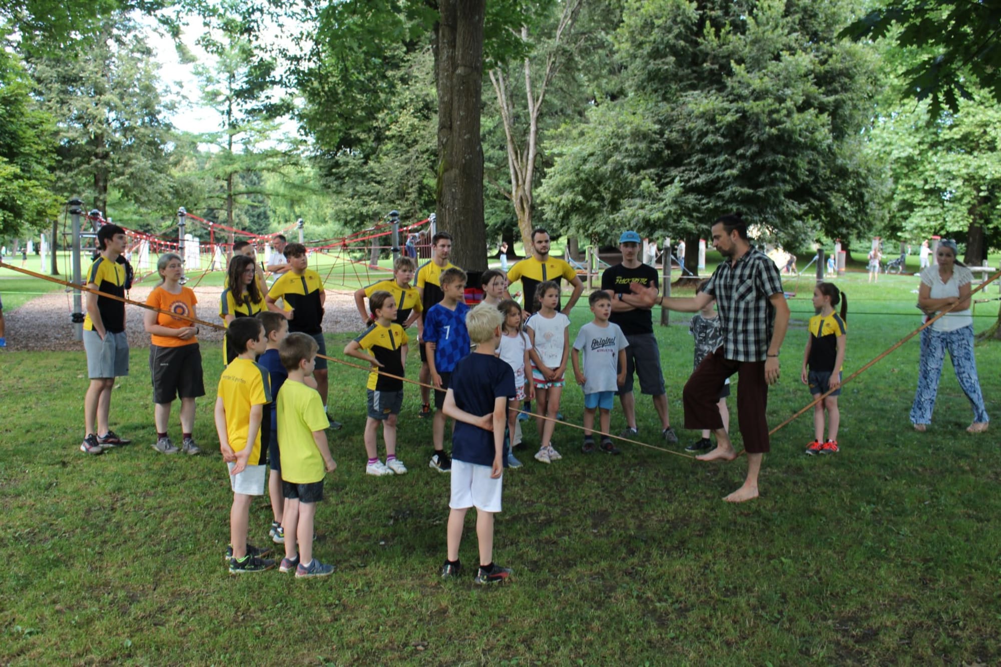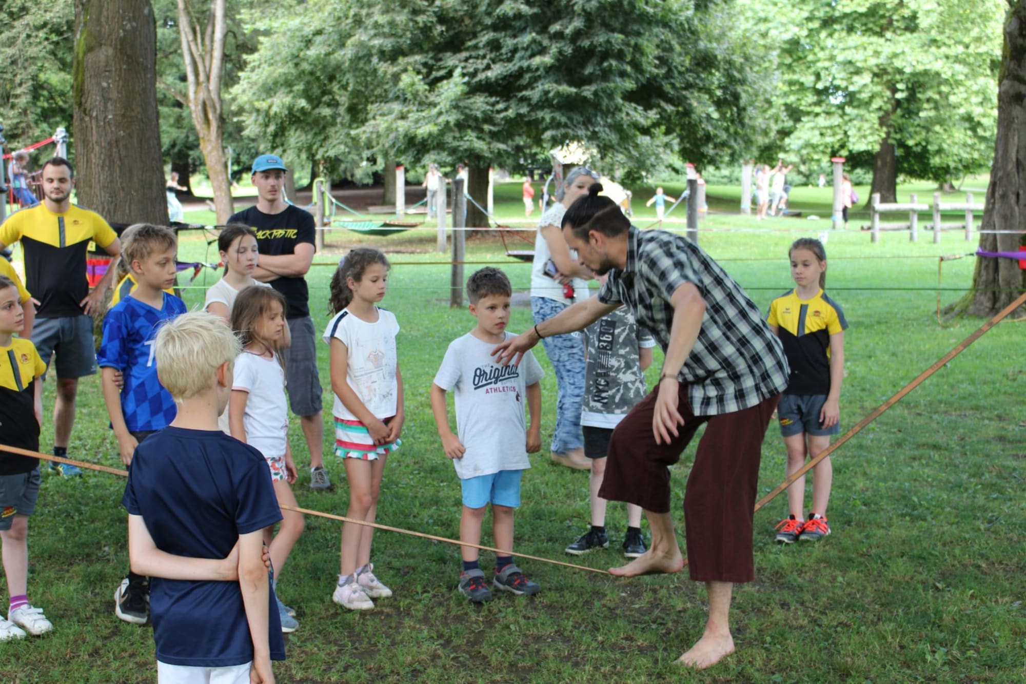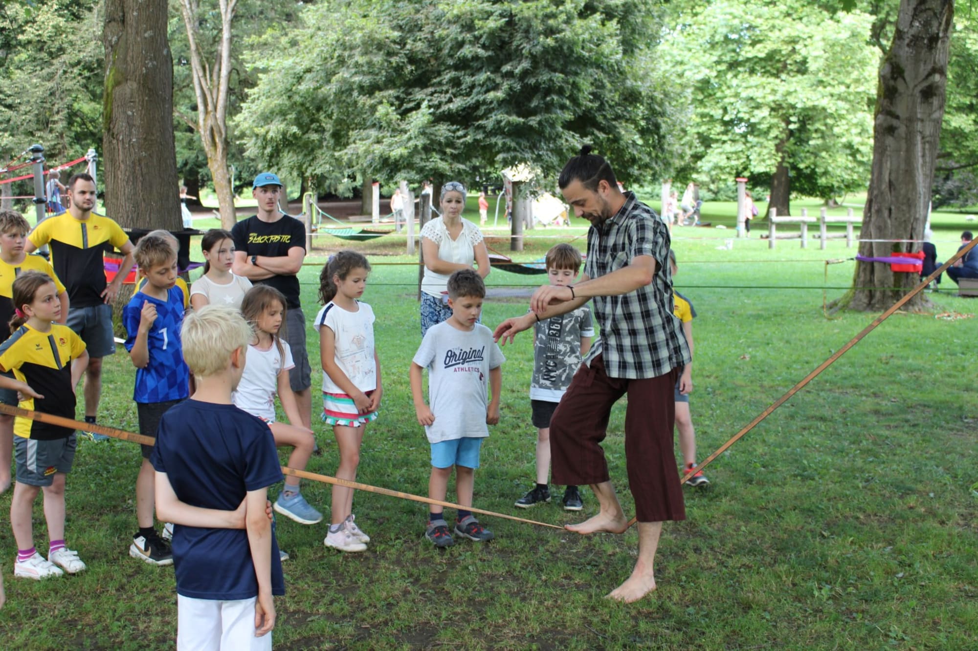Unter den super Anleitungen von Andreas Erschen und Florian Zschätzsch wurden wir in die Kunst des Slacklinens eingeführt. Dies gilt als Trendsportart, bei der man auf einem Gurtband balanciert, das zwischen zwei Befestigungspunkten gespannt ist. Mit viel Elan und Mut wurden sämtliche Lines mit mehr oder weniger Erfolg getestet. Seht euch einfach die Bilder dazu an.