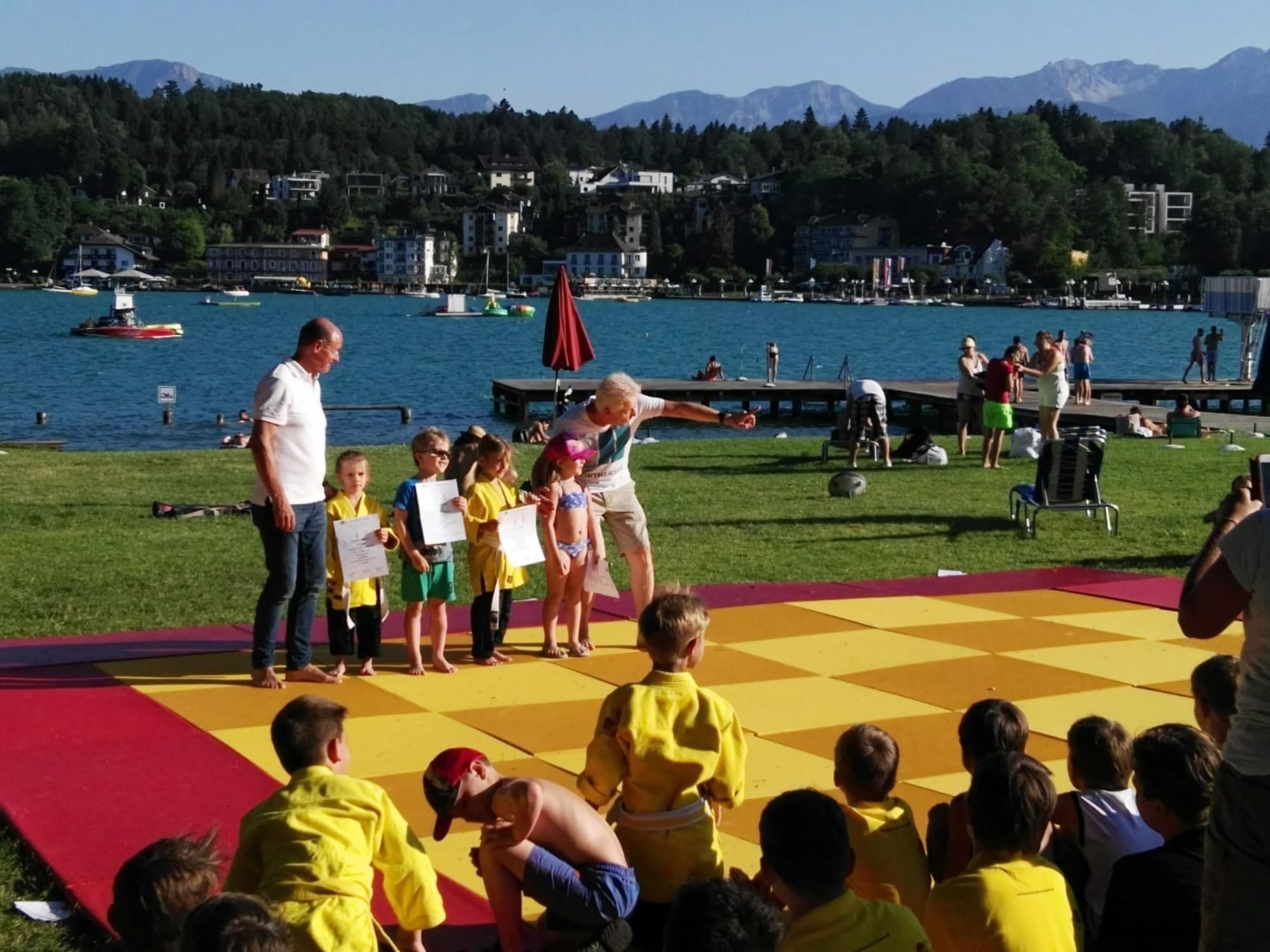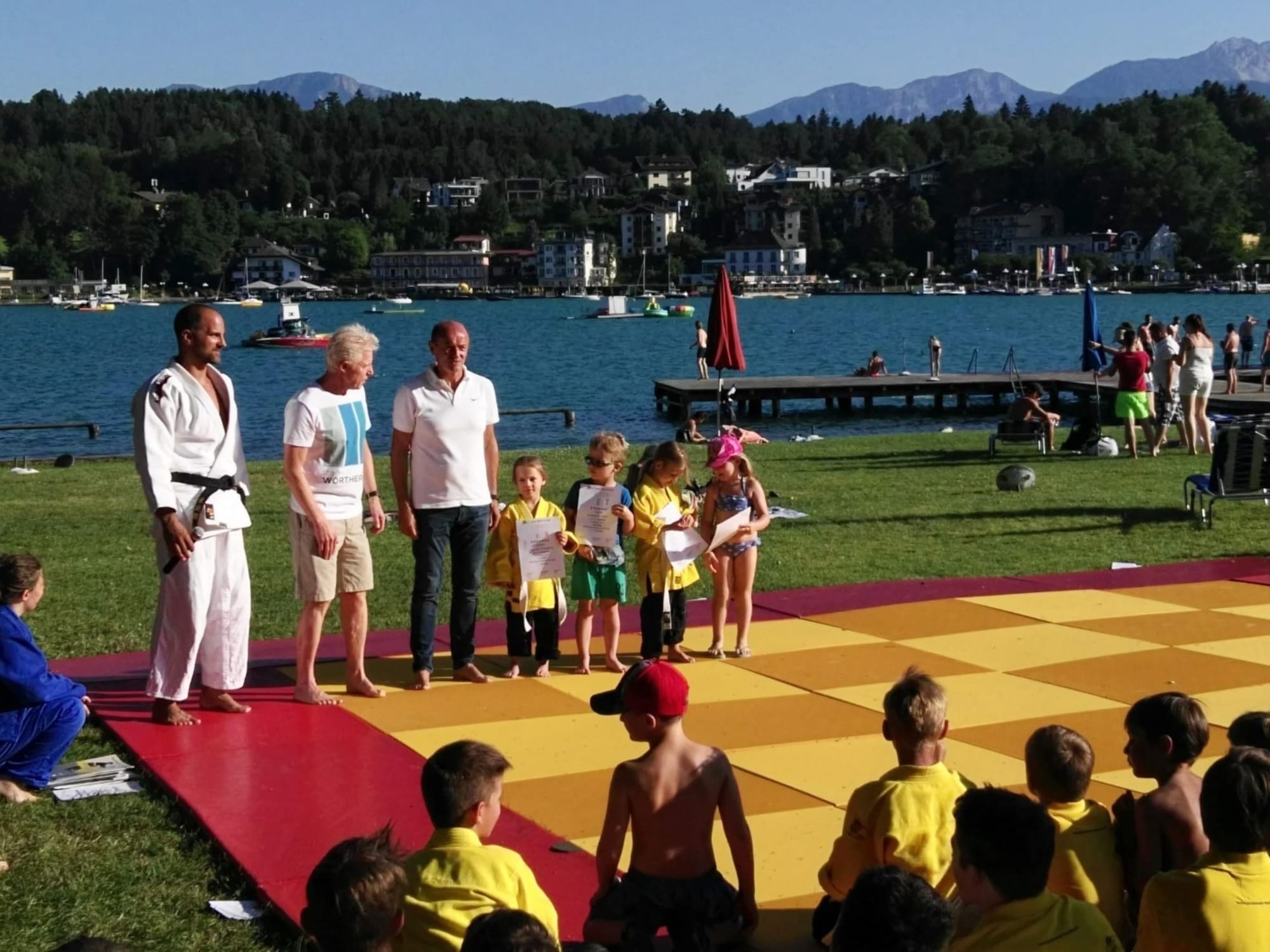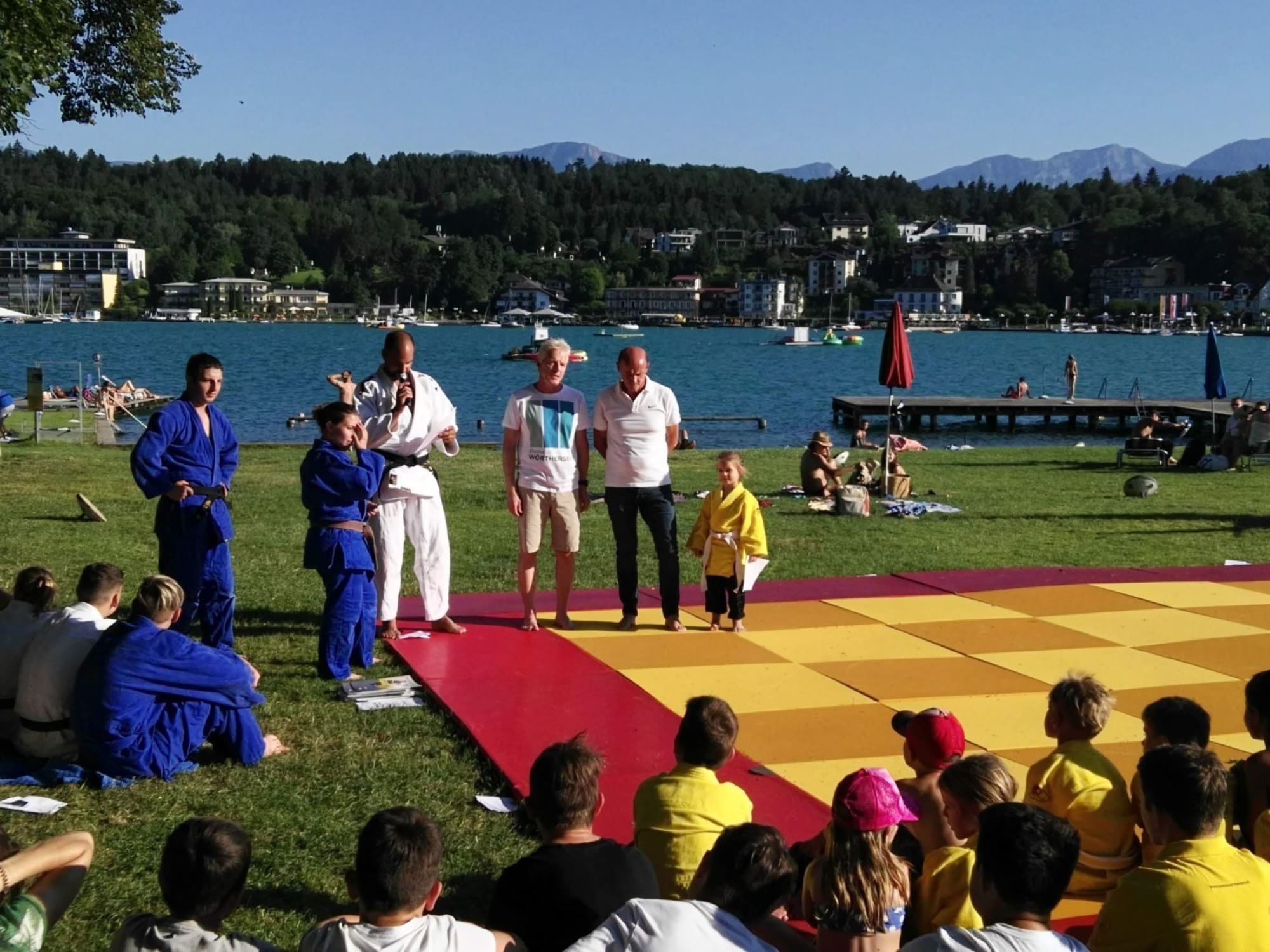 Der traditionelle Judo-Jahresabschluss fand heuer im Strandbad Velden am Wörthersee statt. Bei prächtigem Wetter und Temperaturen weit über 30°C zeigte eine Abordnung von Judo Wörthersee einen Querschnitt durch den Judosport.
