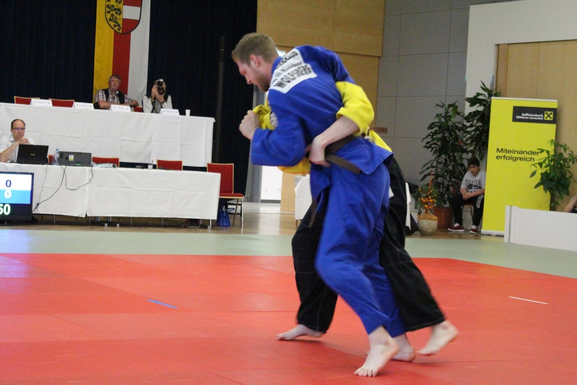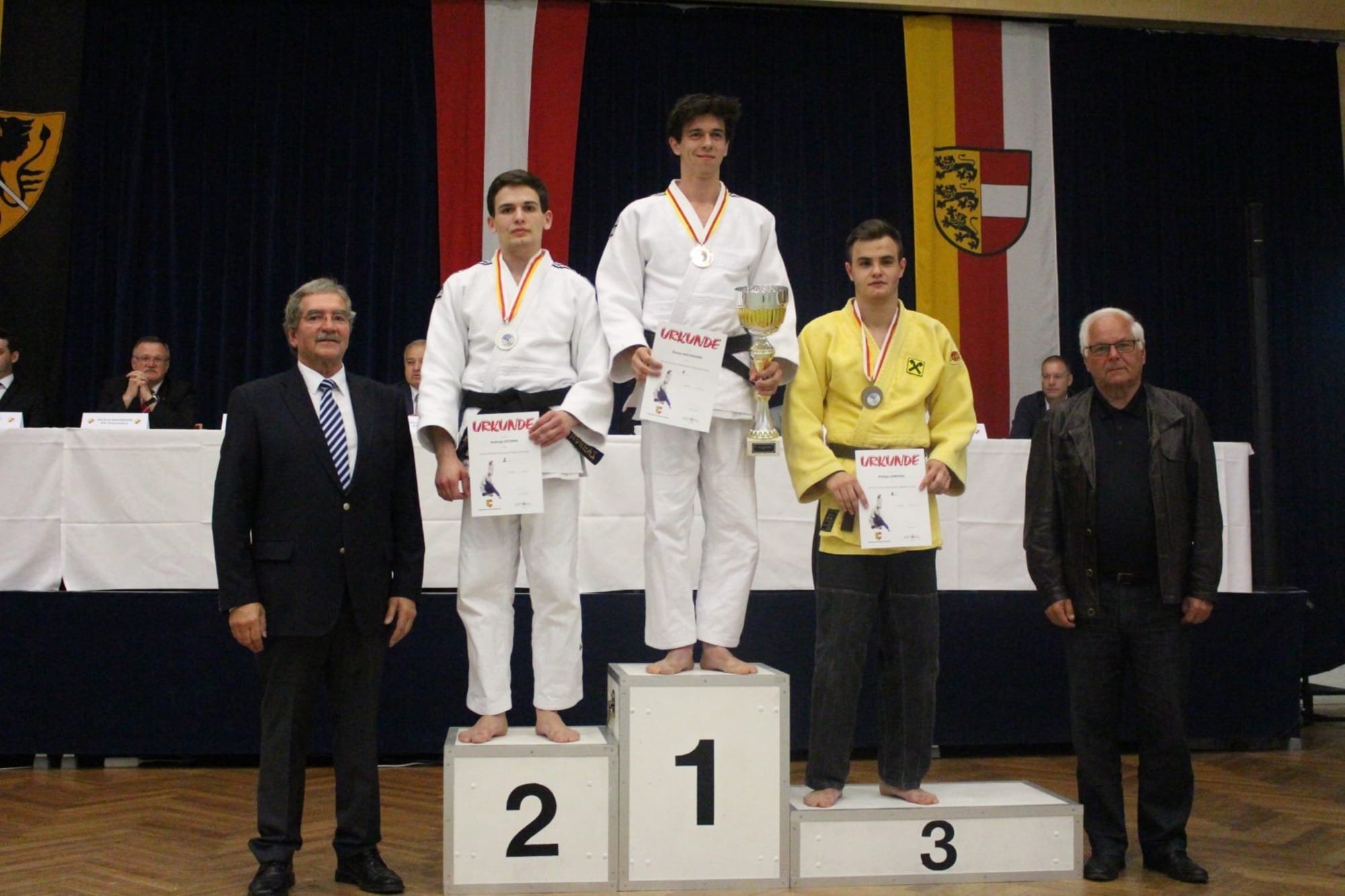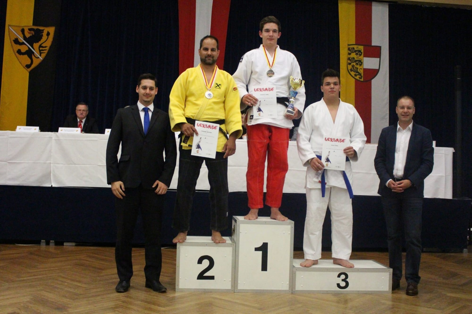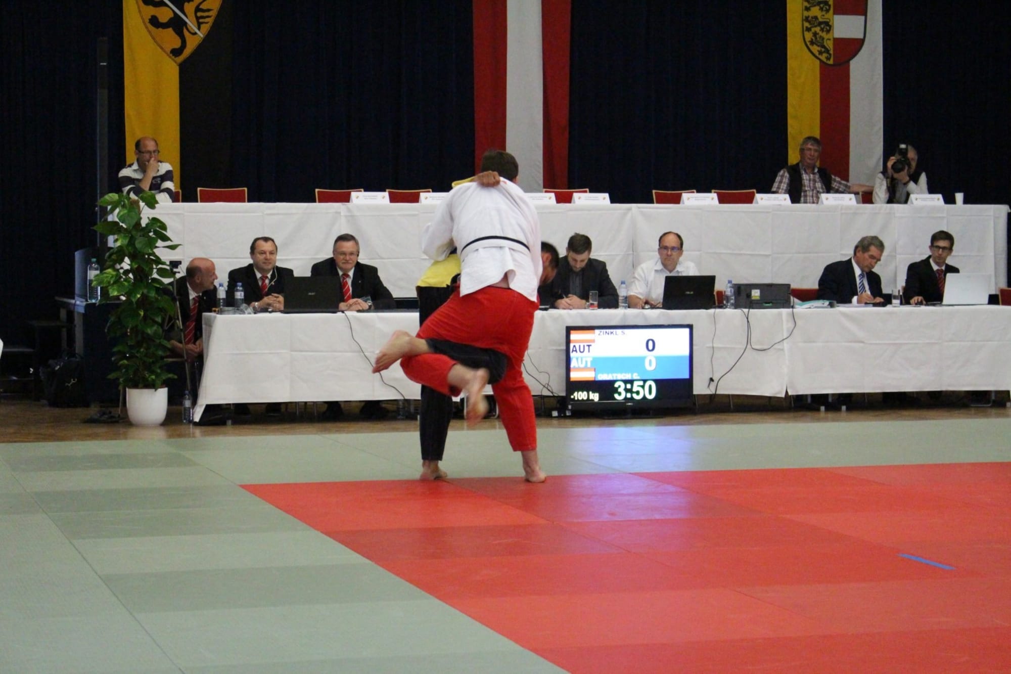 Philipp Samonig war als nächster Kämpfer auf der Matte. Den ersten Kampf konnte er knapp nicht für sich entscheiden, überzeugte jedoch in den beiden folgenden mit schönen Techniken. Ebenso in seinem letzten Kampf unterlag Philipp seinem Gegner und beendete den heutigen Wettkampftag mit Platz 3. Der vierte Platz gehörte heute Oliver Holmes, er verpasst das Podest knapp. Am Schluss stand Christoph Oratsch auf der Matte. Sein erster Kampf führte zu einem unerwarteten, wenn auch verdienten, Ippon für seinen Gegner (den zukünftigen Landesmeister). In Kampf Nummer zwei holte Chrisotph die Kohlen aus dem Feuer und durfte somit die silberne Medaille mit nach Hause nehmen.