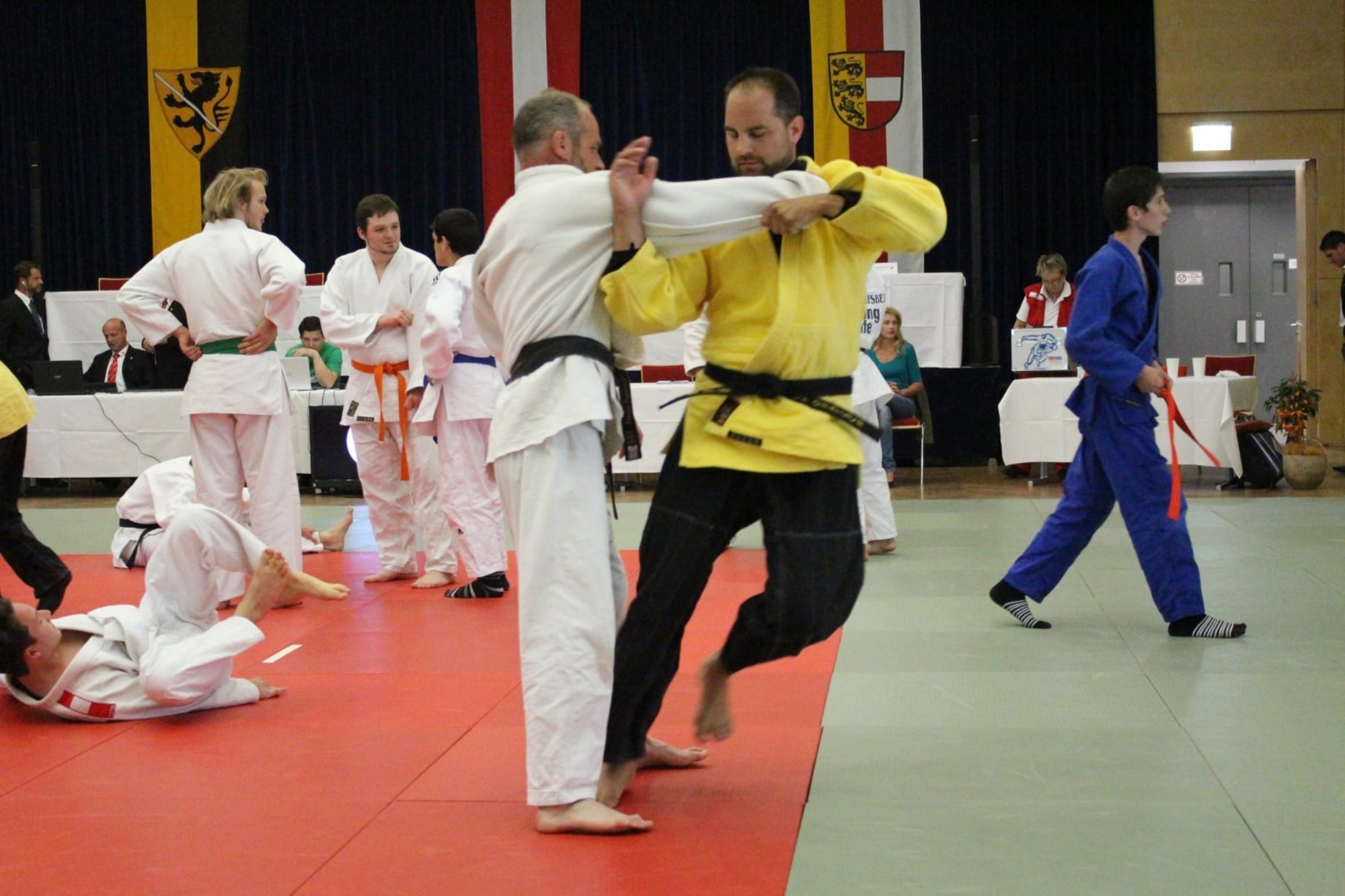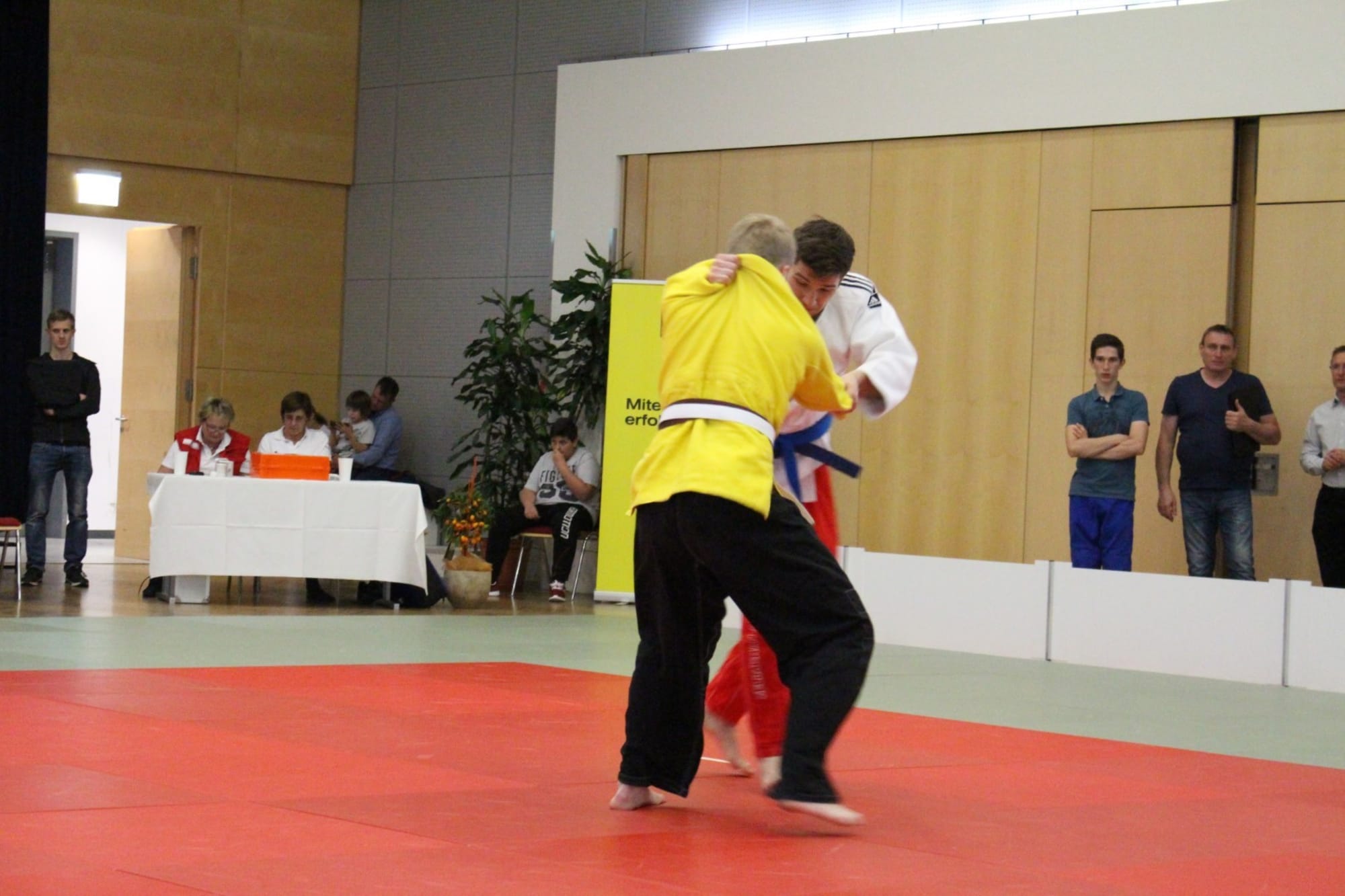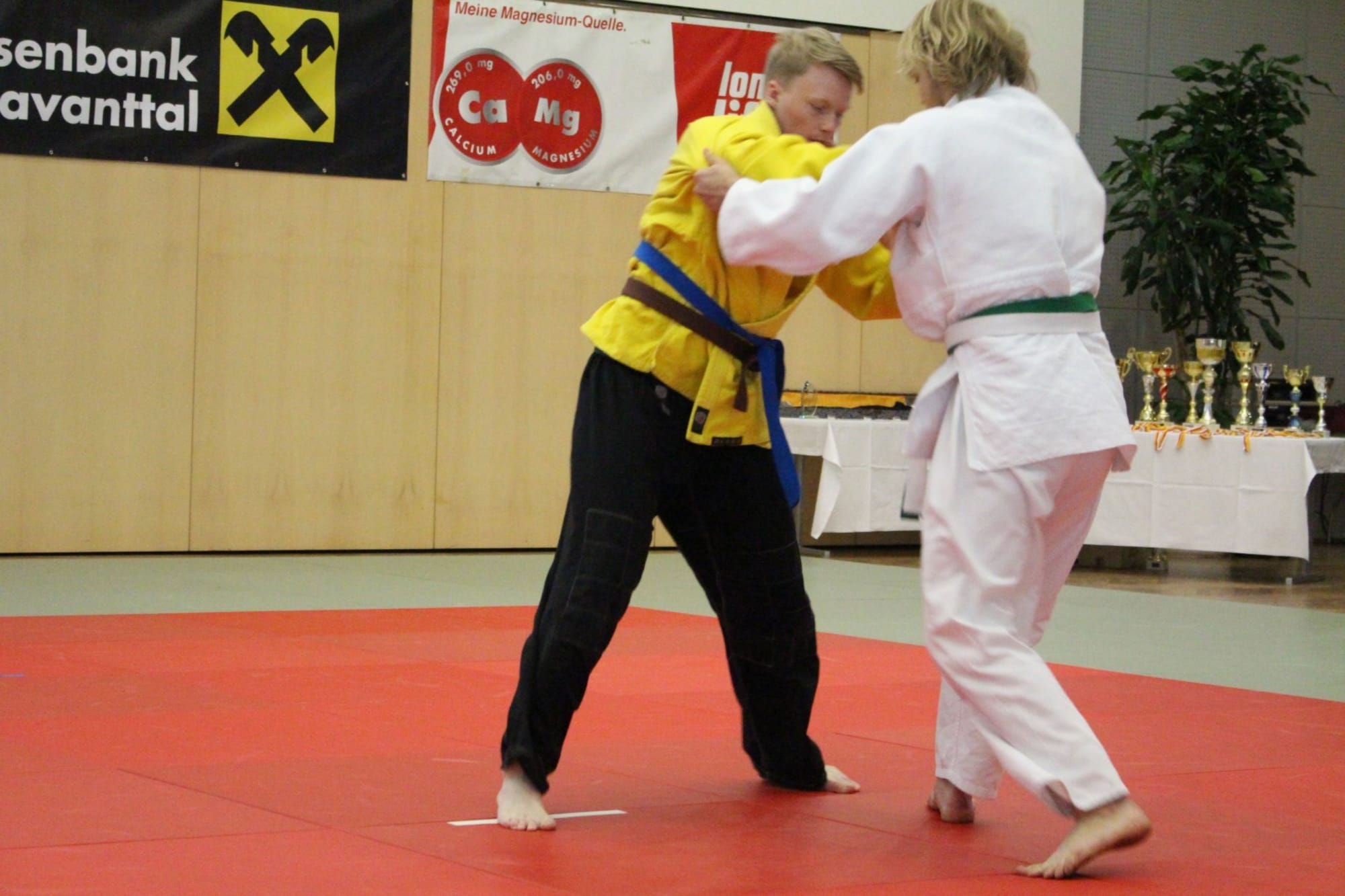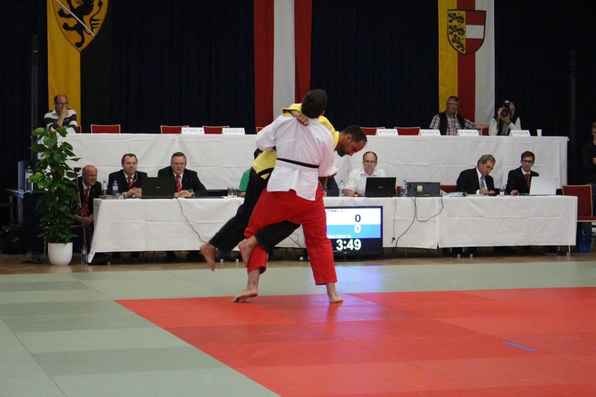Philipp Samonig war als nächster Kämpfer auf der Matte. Den ersten Kampf konnte er knapp nicht für sich entscheiden, überzeugte jedoch in den beiden folgenden mit schönen Techniken. Ebenso in seinem letzten Kampf unterlag Philipp seinem Gegner und beendete den heutigen Wettkampftag mit Platz 3. Der vierte Platz gehörte heute Oliver Holmes, er verpasst das Podest knapp. Am Schluss stand Christoph Oratsch auf der Matte. Sein erster Kampf führte zu einem unerwarteten, wenn auch verdienten, Ippon für seinen Gegner (den zukünftigen Landesmeister). In Kampf Nummer zwei holte Chrisotph die Kohlen aus dem Feuer und durfte somit die silberne Medaille mit nach Hause nehmen.