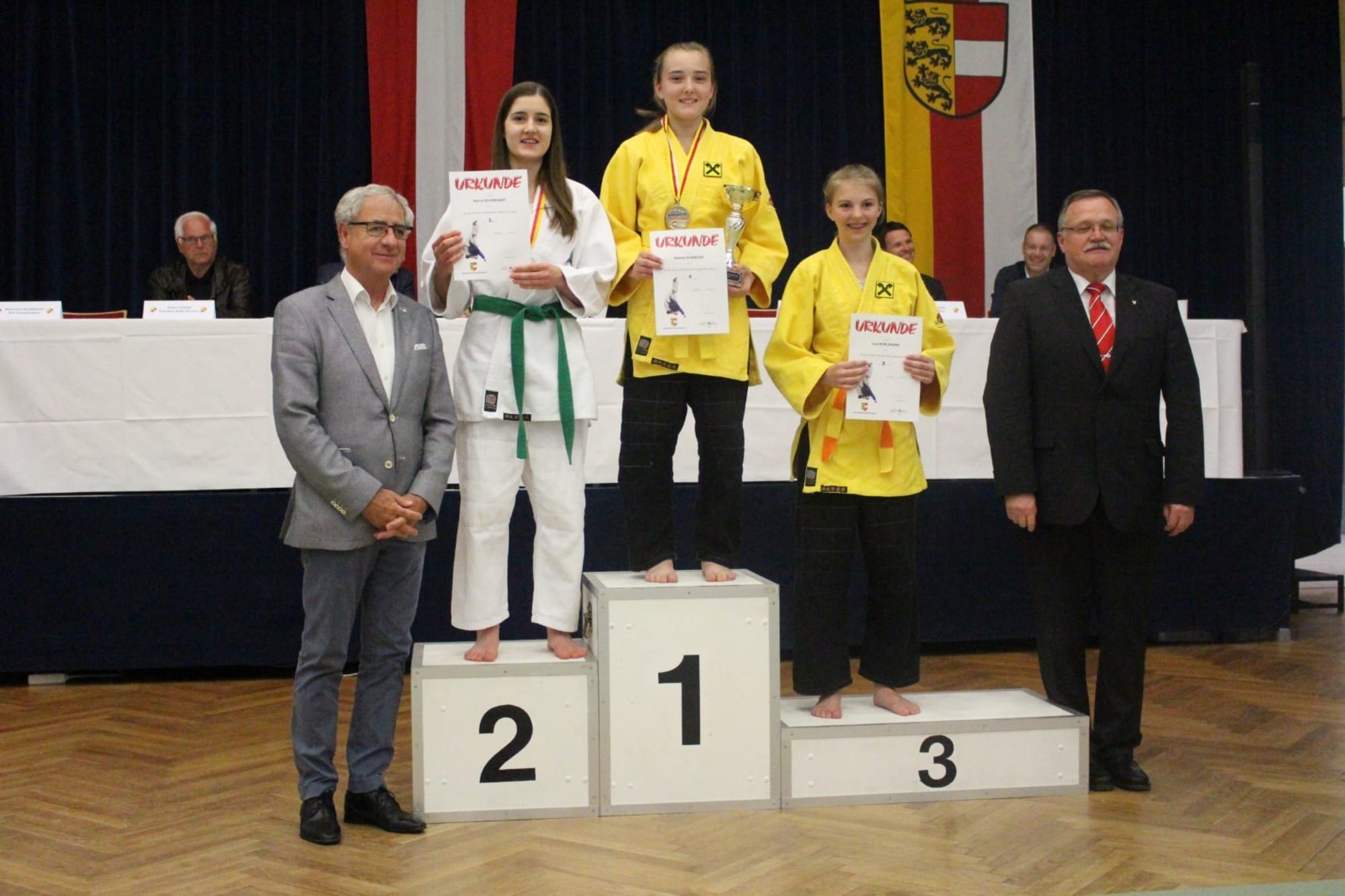 Gleich zu Beginn konnten Helene Scherzer und Lisa Hürlimann zeigen, was in ihnen steckt. Helene zeigte in zwei Kämpfen ihren Gegnerinnen wie Judo funktioniert: 1. Platz und somit Landesmeisterin 2017! Lisa startete in der selben Klasse wie Helene und konnte nach ihren beiden Wettkämpfen den dritten Platz ihr Eigen nennen. Helene machte schon nach kurzer Zeit klar, dass Judo Wörthersee mit zumindest einem Titel die Heimreise antreten wird!
