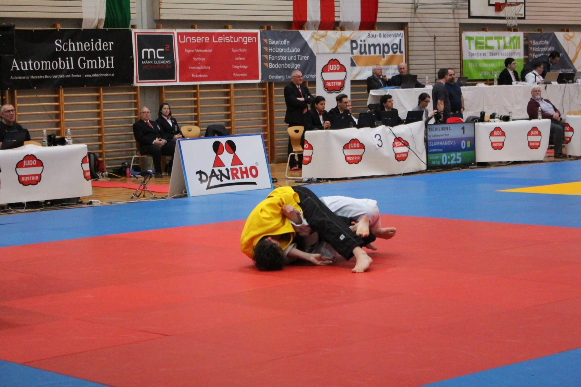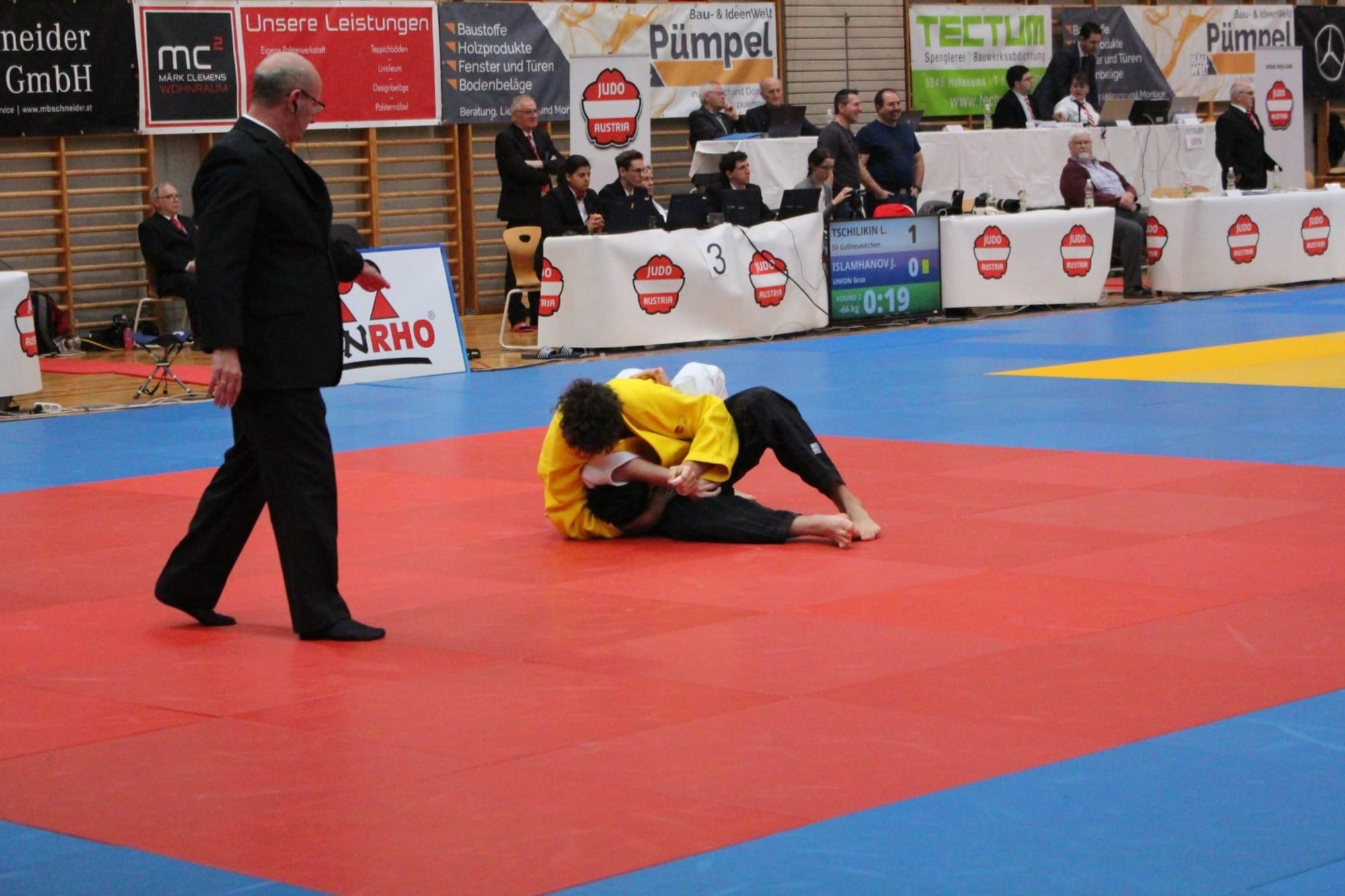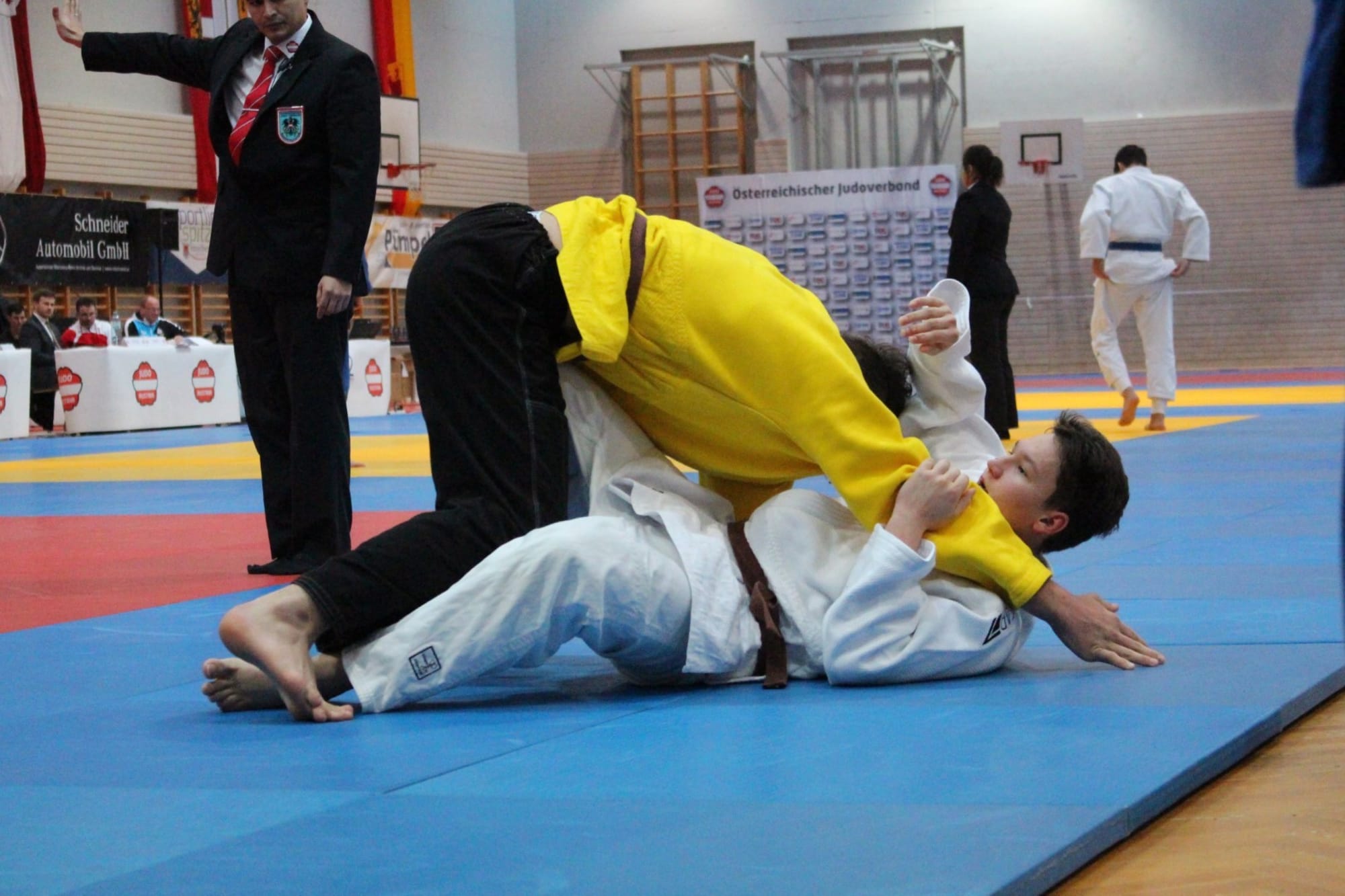 Simon Pitschek und Elias Kozissnik mussten sich leiderbereits in der Vorrunde aus dem Turnier verabschieden. Somit lagen alleHoffnungen auf Simon Ferm und er konnte diese erfüllen. Nach einer Vorrunde mitHöhen und Tiefen gipfelte das Finale in einem wahren Krimi. Nach einerschnellen Führung von Simon, konnte sein Gegner diese egalisieren. Nach einemoffenen Schlagabtausch über mehrere Minuten, gelang Simon schließlich dersiegbringende Angriff, welcher in einer Festhaltetechnik endete. Der Jubel unddie Freude im Team waren riesig!