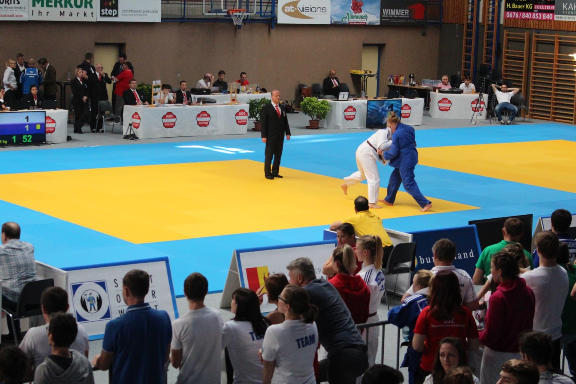 Andrea hatte zwei erfahrene Wettkämpferinnen vor sich und machte ihre Sache ausgezeichnet. In Kampf eins hielt auch Andrea den Kampf lange offen, die Taktik schien aufzugehen. Ab Minute zwei war Andrea tonangebend, musste allerdings wie Philipp im Bodenkampf der Gegnerin den Vortritt lassen. Im zweiten Gefecht stand es bis wenige Sekunden vor Ende eins zu eins bei Waza-Ari Wertungen, allerdings hatte Andrea bereits zwei Strafen erhalten und dies wurde ihr mit der dritten Bestrafung und der damit einhergehenden Disqualifikation zum Verhängnis. Allerdings wurden Andreas hervorragende Leistung auch vom Nationaltrainer Hofer Ernst gewürdigt und brachten Andrea auf dessen Beobachtungsliste!