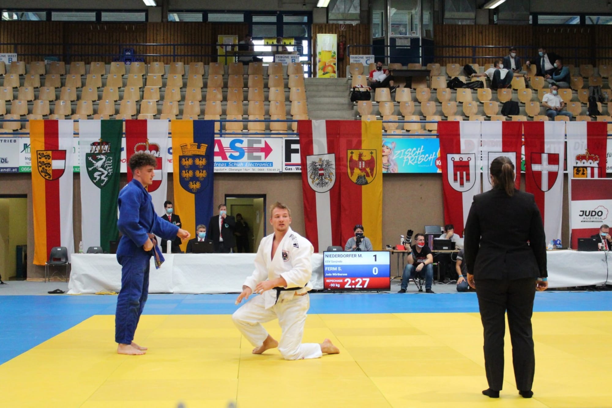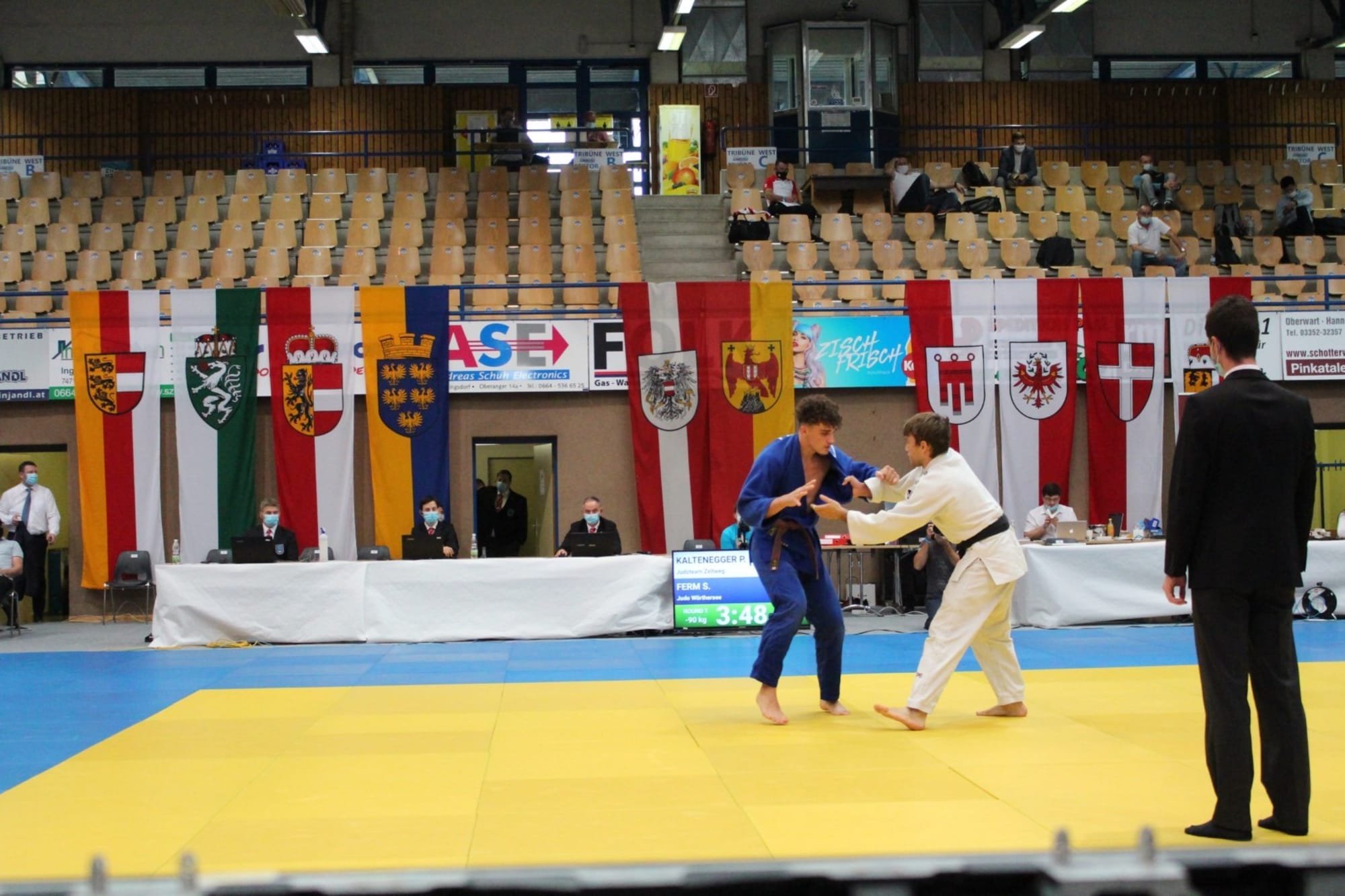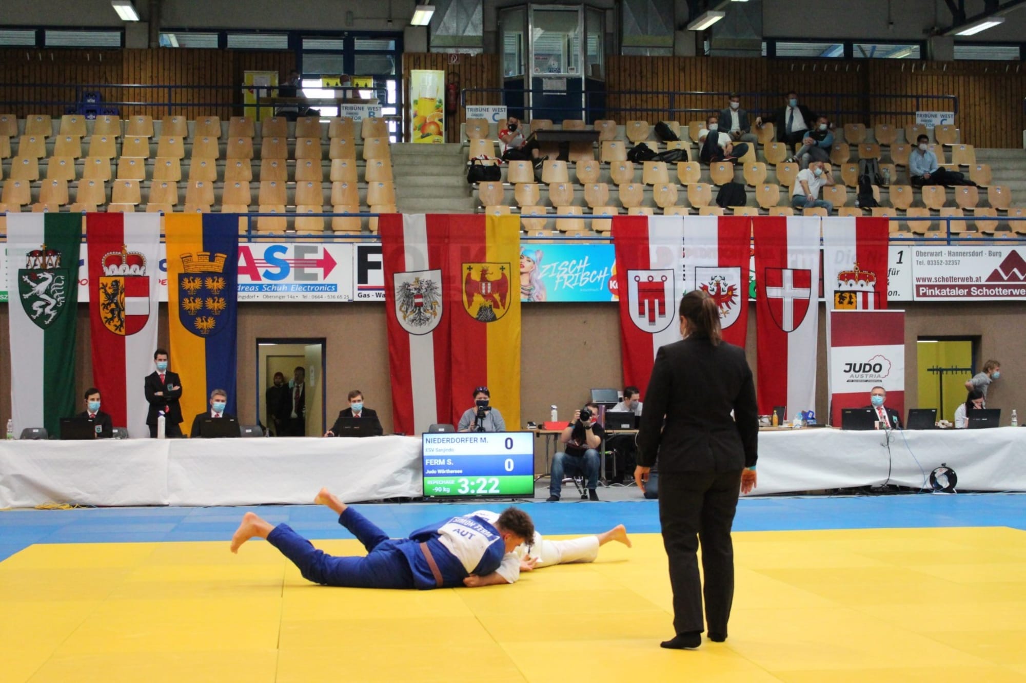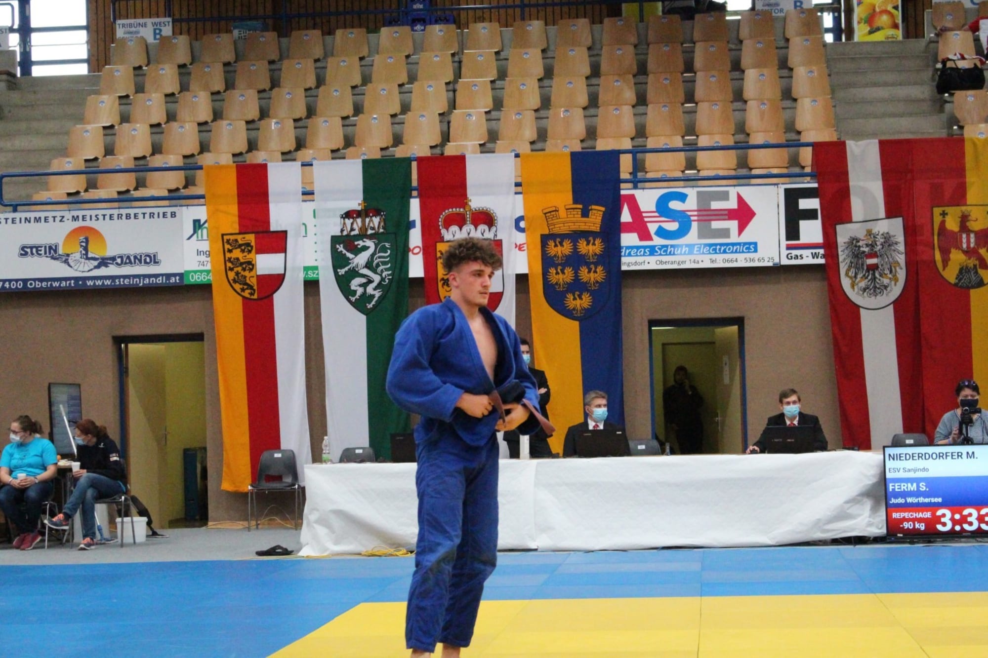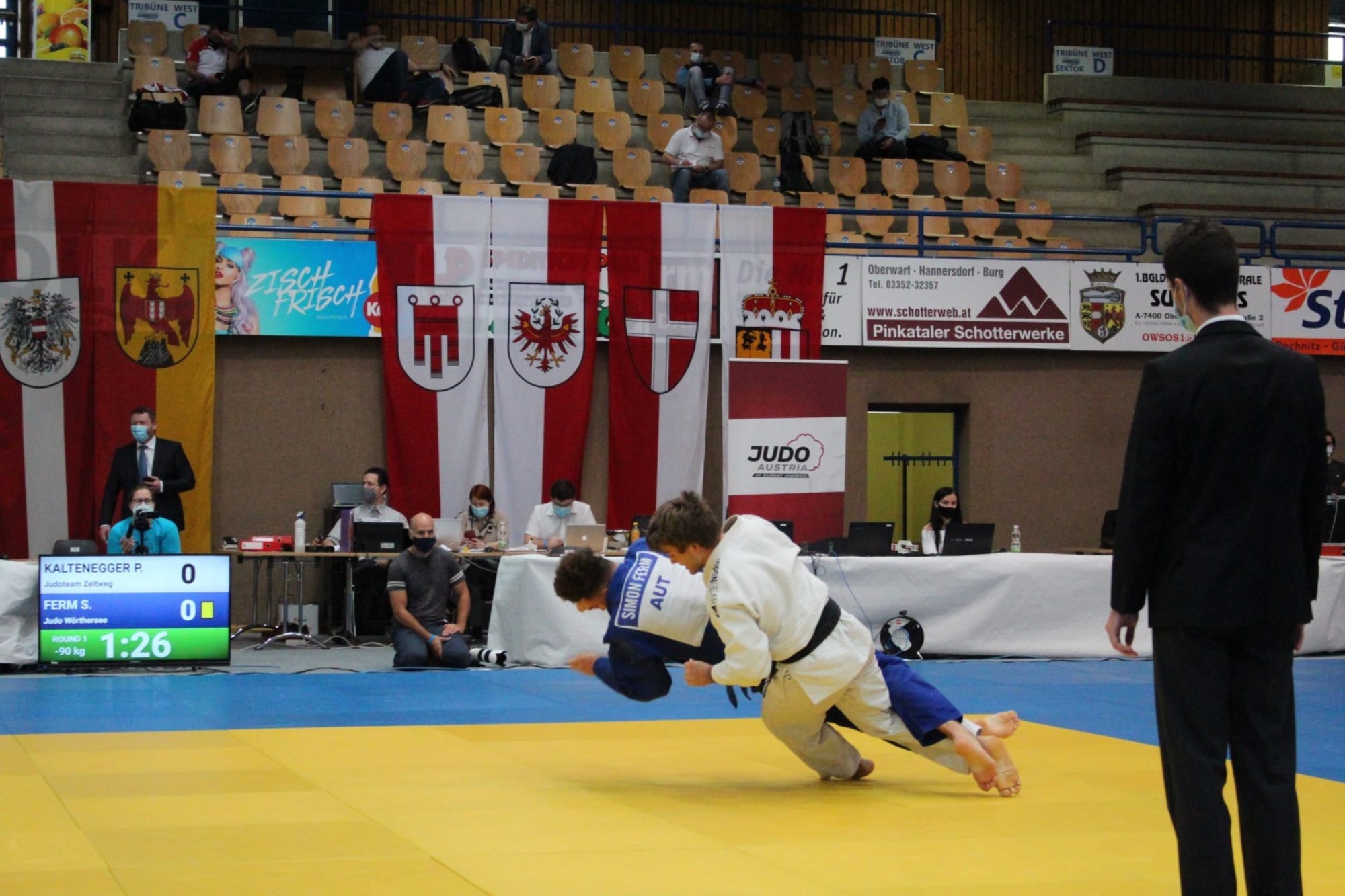 Ein Block,bestehend aus vier Gewichtsklassen, wurde komplett ausgekämpft und prämiert.Danach wurde die Halle geräumt, durchgelüftet, die Matten desinfiziert und dernächste Block startete. Temperaturcheck, regelmäßige Händedesinfektion,Mund-Nasen-Schutz, Anwesenheitsliste, Einverständniserklärung, nur ein Betreuerpro Verein, keine Zuseher, usw. inklusive. Somit erstreckte sich dieStaatsmeisterschaft über zwei Tage mit je zwei Blöcken. Und der erste Block amSonntag wurde von Judo Wörthersee besucht. Simon Ferm, seines Zeichens„Österreichischer Meister U18“, hat sich in der allgemeinen Klasse gemessen unddies recht erfolgreich. Simon war mit Abstand der jüngste Athlet im starkbesetzten Feld der Gewichtsklasse bis 90kg. Im ersten Kampf zeichnete sich einSchlagabtausch auf Augenhöhe ab, doch im Golden Score konnte Simon seinsteirisches Gegenüber mit einer wunderschönen Übernahmetechnik mit Ippon aufdie Matte legen. In Runde zwei wartete niemand geringeres als der, zu diesemZeitpunkt noch amtierende Staatsmeister auf Simi. Nach einem tollen Wurfansatzvon unserem Athleten wurde er am Boden mittels Festhaltetechnik fixiert. SomitTrostrunde und Kampf um das kleine Finale. Simon fand auf der Matte einenseiner Trainingspartner aus den zahlreichen Trainingslagern des heurigenSommers wieder, fightete brav, musste jedoch der Erfahrung Tribut zollen.